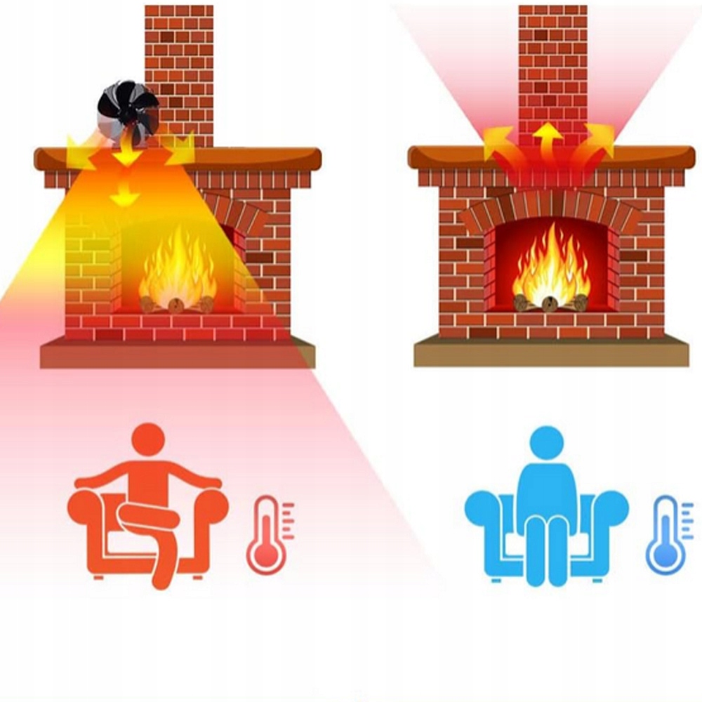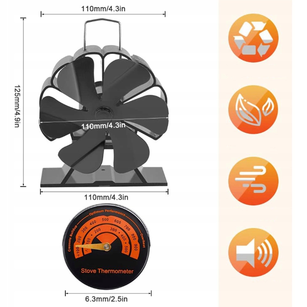🔥 РОБОЧА ТЕМПЕРАТУРА: Потік повітря: 160-200 cfm, швидкість обертання: 750-1050 об/хв, 6-лопатевий міні-вентилятор каміна починає обертатися, коли температура сягне 50°C/122°F. Чим сильніший вогонь, тим швидше лопаті обертаються. Він широко використовується в дров'яних печах, газові плити, дров'яні конфорки, багатопаливні каміни, каміни тощо