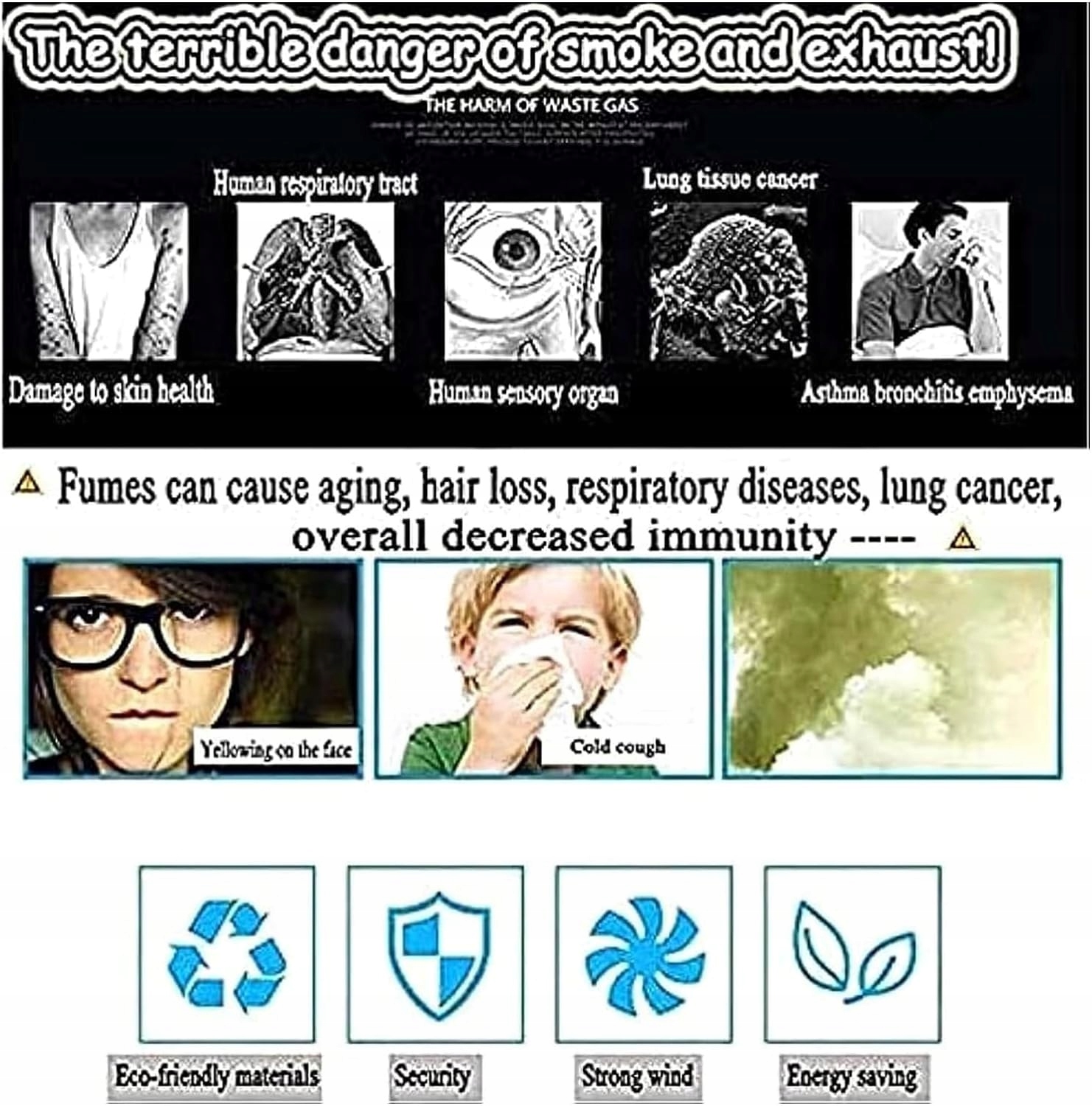 Нова захисна конструкція. Витяжний вентилятор каміна був спеціально розроблений із захистом від дощу та снігу, що дозволяє вам насолоджуватися безпроблемним видаленням диму навіть у нестабільну погоду. Non sol захищає димовидалювальний пристрій від вітру, снігу, води та пилу, а також робить пристрій димовидалення міцним і довговічним. Твердий і міцний матеріал, корпус і кронштейн виготовлені з високоякісного холоднокатаного листового металу, який є міцним і не деформується, що забезпечує тривале використання пристрою димовидалення. Крім того, він має такі переваги, як захист від корозії, зносостійкість, стійкість до корозії тощо для забезпечення безпечнішого використання. Легке встановлення Змійовик для димоходу легко встановити, просто підключіть два кінці дроту до джерела живлення без допомоги професійних техніків. Підходить для більшості типів димоходів, що дозволяє легко вирішити проблему димовидалення. ШИРОКЕ ЗАСТОСУВАННЯ Незалежно від того, чи це дров'яна піч, камін, камін, котел, водонагрівач або інший пристрій, що працює на дровах, газі, вугіллі чи маслі, димовідвідник гарантує ідеальне відведення диму. Будь ласка, зверніть увагу, що пристрій димовидалення необхідно встановлювати на димоході та розташовувати на відстані не менше 6 метрів від джерела вогню, щоб уникнути пошкодження змійовика. У той же час температуру в димоході необхідно підтримувати в безпечних межах, щоб уникнути ізоляції кабелю живлення.