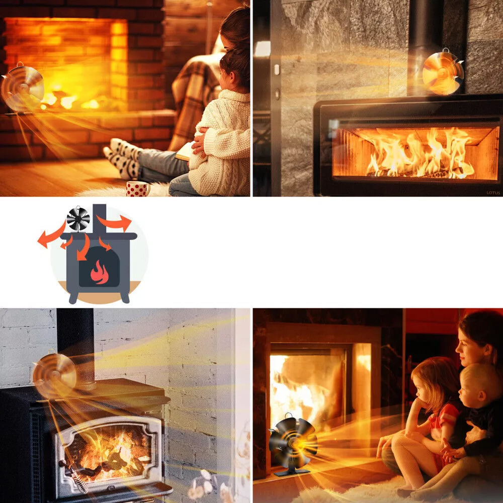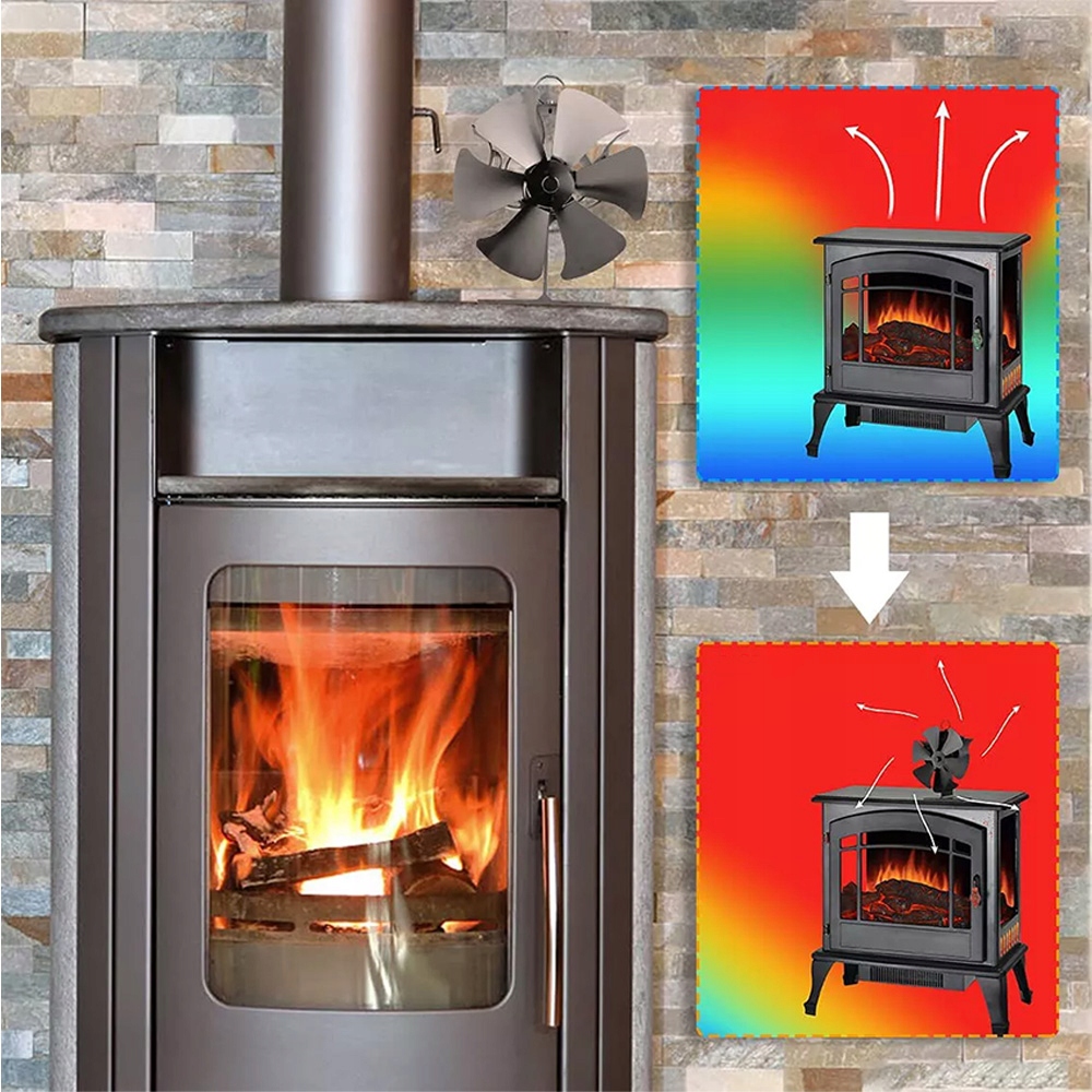 Вентилятори з 6 лопатями створені для забезпечення надширокого потоку тепла від горіння в каміні або піч, щоб оптимізувати розподіл тепла печі в кімнаті для ефективного опалення. Чим сильніше духовка, тим сильніше циркулює вентилятор і гаряче повітря поширюється на 2 метри. Мета полягала в тому, щоб нагріти приміщення швидше, використовуючи набагато менше палива. Економте гроші на електроенергії.