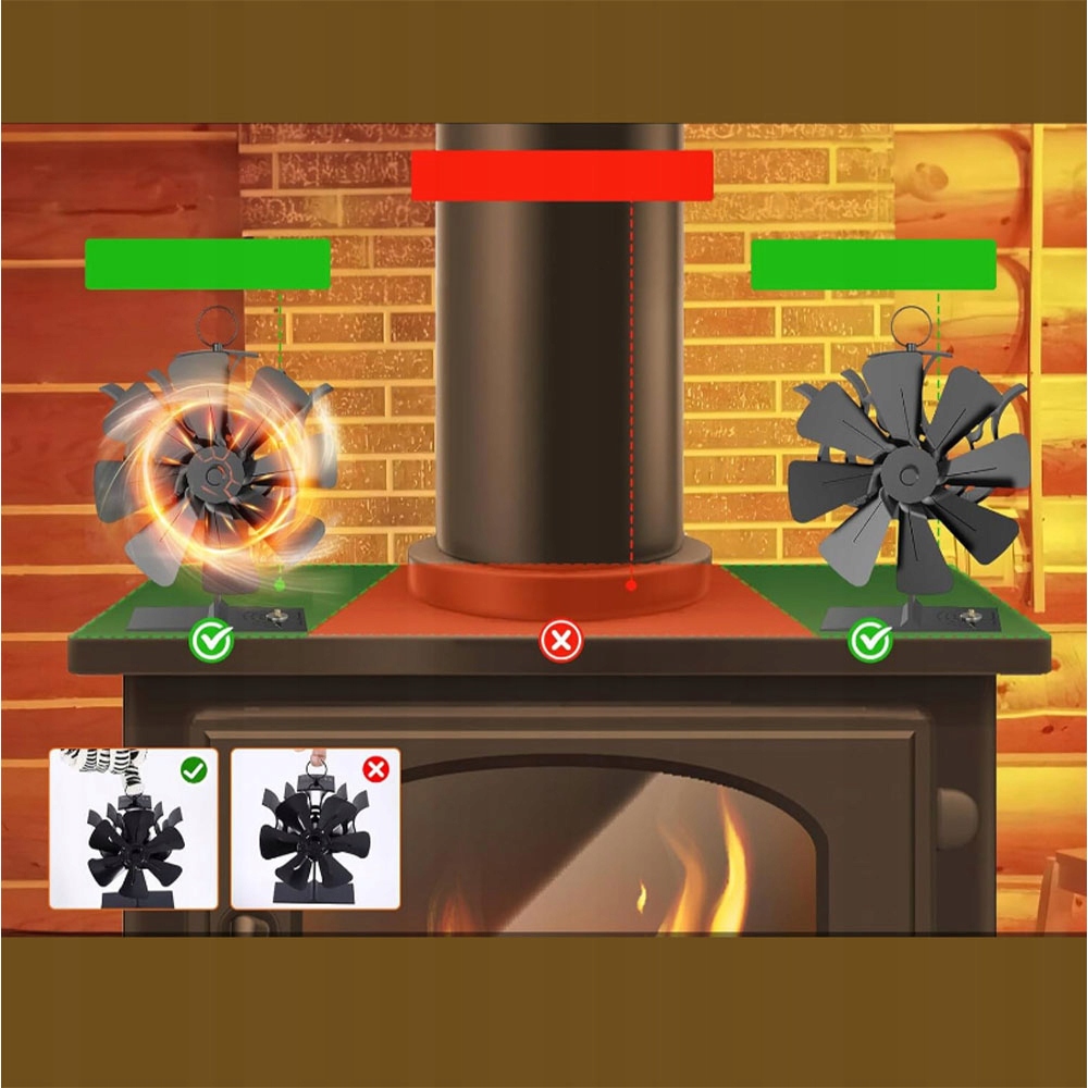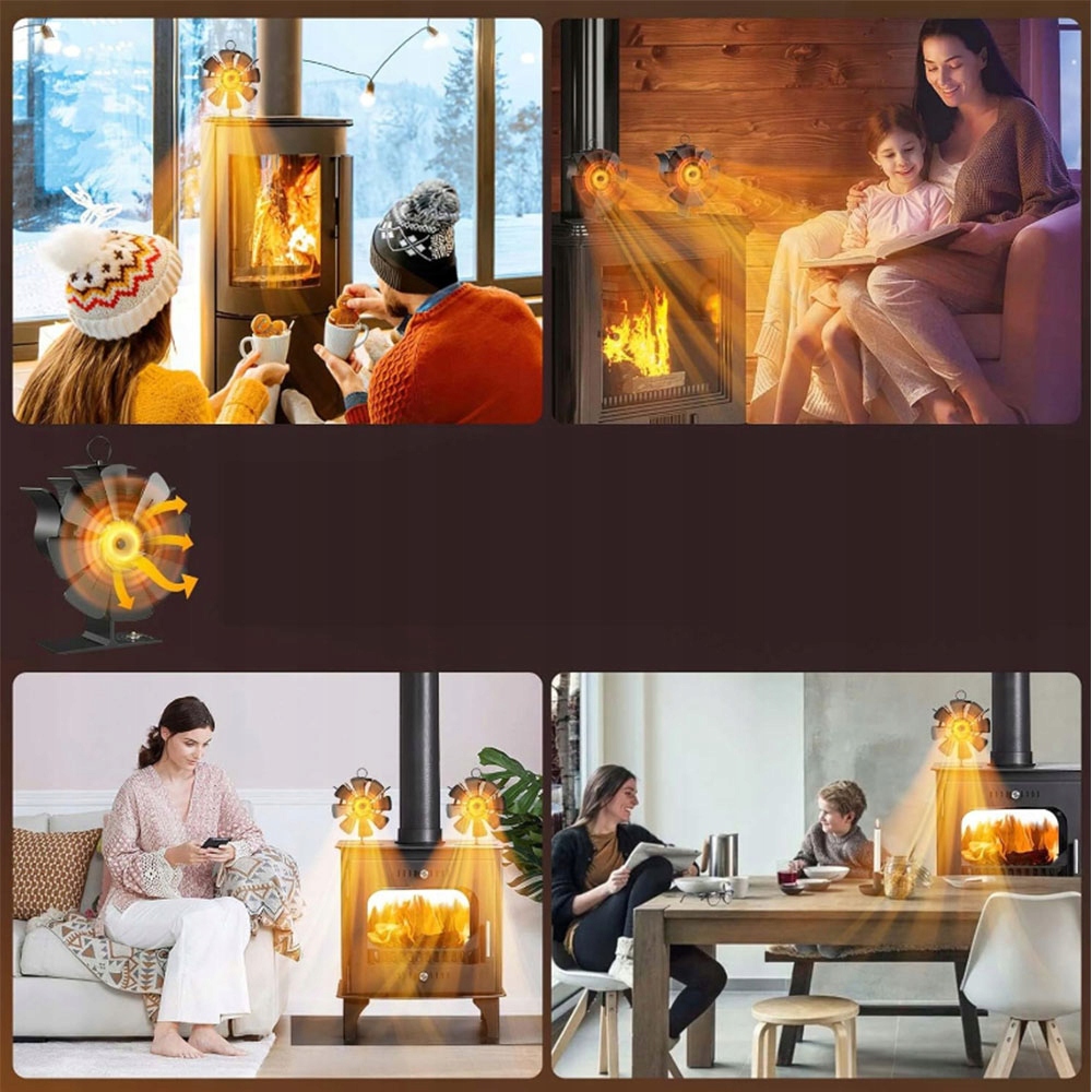 Збирати не потрібно, просто помістіть цей маленький вентилятор плити на гладку рівну поверхню плити. Вентилятор печі автоматично обертається при підвищенні температури. Чим тепліше варильна панель, тим швидше обертається вентилятор плити і тим тепліше повітря циркулює екологічний вентилятор. І 38% економії витрат на дрова або паливо.