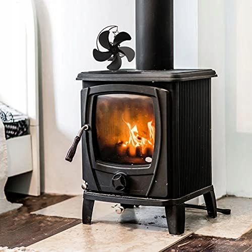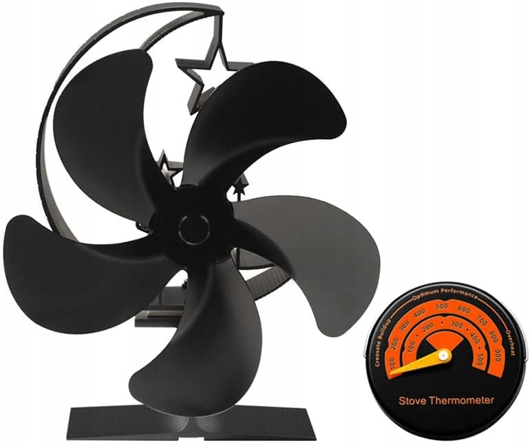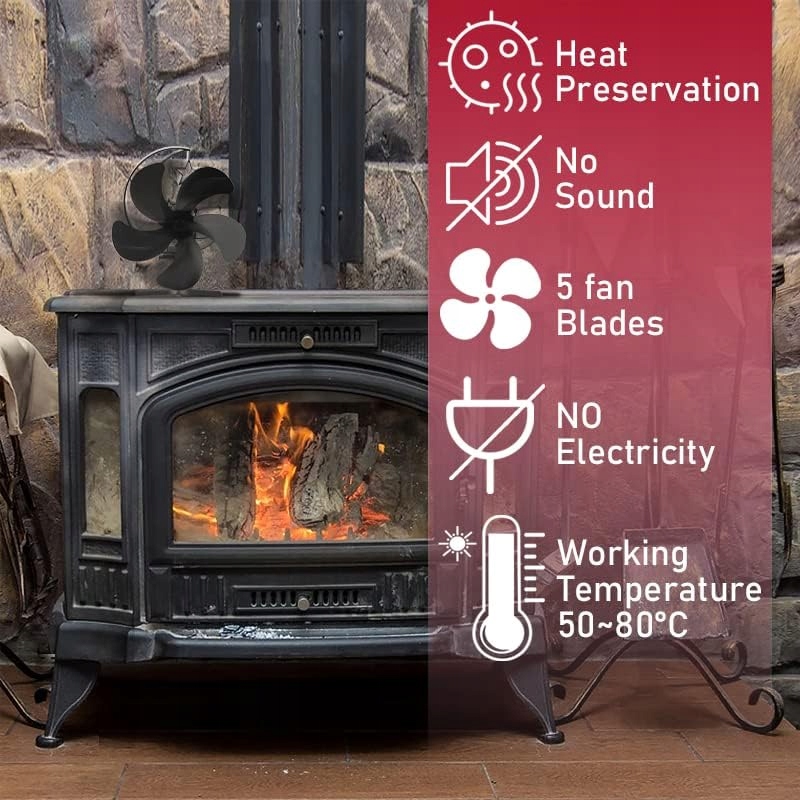 Чорний, 5-лопатевий вентилятор, працює від тепла, декоративний вентилятор для дров'яної печі, екологічний, тихий, ефективний, розподіляє тепло