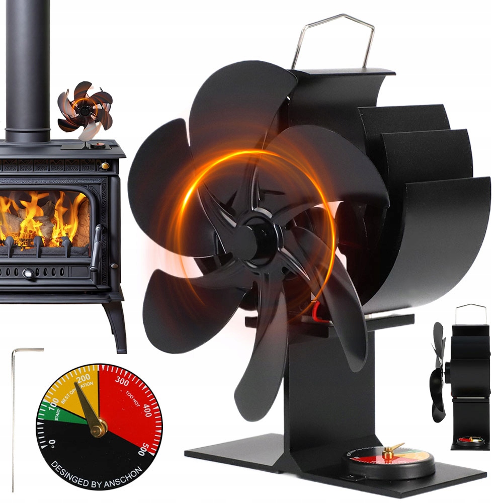 КАМІННИЙ ВЕНТИЛЯТОР З ТЕРМОМЕТРОМ 6 ЛОПАТЕЙ 16*17 СМ АЛЮМІНІЄВИЙ СПЛАВ