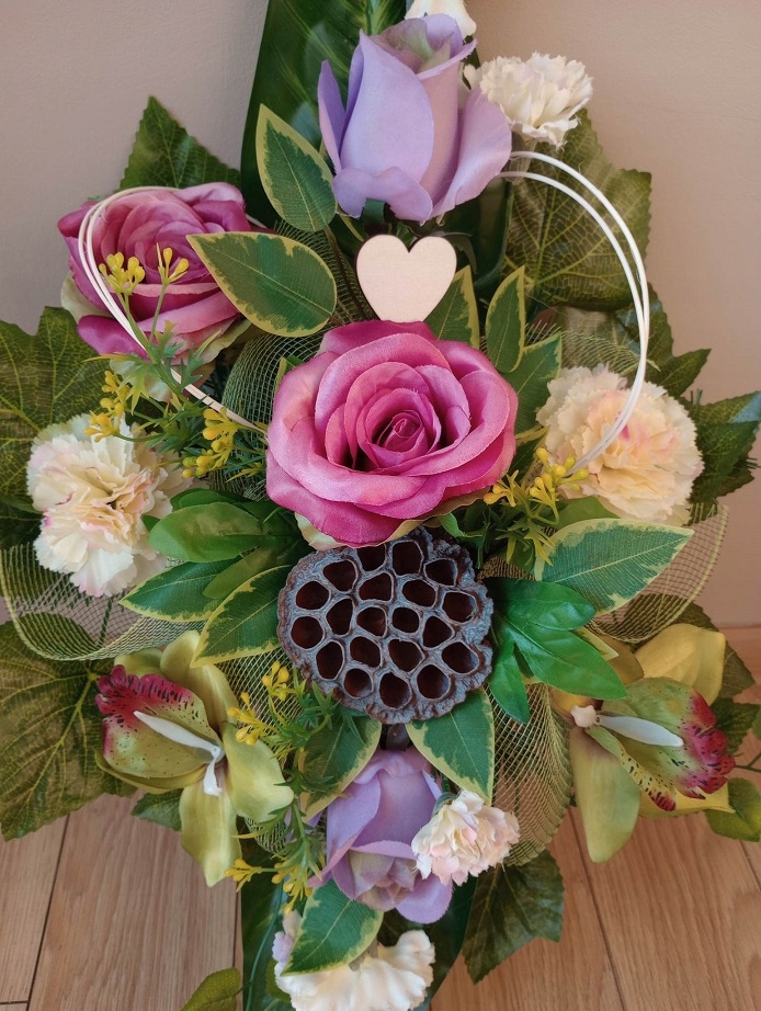 Виготовлені композиції є ручною роботою, тому можлива розбіжність приблизно до 5 см. Налаштування монітора можуть вплинути на насиченість кольорів.