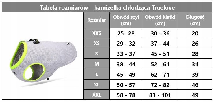 Спекотна погода може бути дуже неприємною, а для наших домашніх тварин навіть коротке перебування на сонці може бути небезпечним. Незалежно від переважаючої температури, собакам необхідно виходити на вулицю кілька разів на день, якщо це необхідно, іноді ми не можемо залишити собаку вдома і мусимо брати її з собою, навіть у найспекотніший день. Тоді що? Ми повинні належним чином захистити собаку від перегріву. Жилет-охолоджувач Truelove - незамінний елемент гардеробу собаки. Завдяки повітропроникним і міцним матеріалам і застібкам зі сплаву цинку, жилет також може виконувати функцію шлейки, і нам не потрібно одягати собаку в додаткові аксесуари.