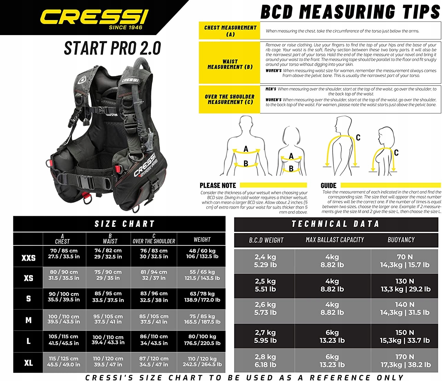 Програма Start Pro 2.0 BCD була розроблена в Італії та виготовлена в Угорщині компанією Cressi. Сертифікація CE EN 250 – EN 1809.