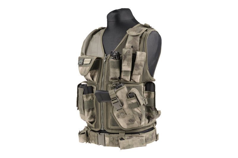 Жилет виготовлений з нейлонової сітки. Має три лямки в бічних частинах, які регулюють розмір. На задній частині є три лямки шириною 50 мм. Жилет розділений на дві частини і застібається на блискавку. На правому клапані є три стандартні підсумки для магазинів Stanag і зручна кишеня на липучці для кріплення латки.