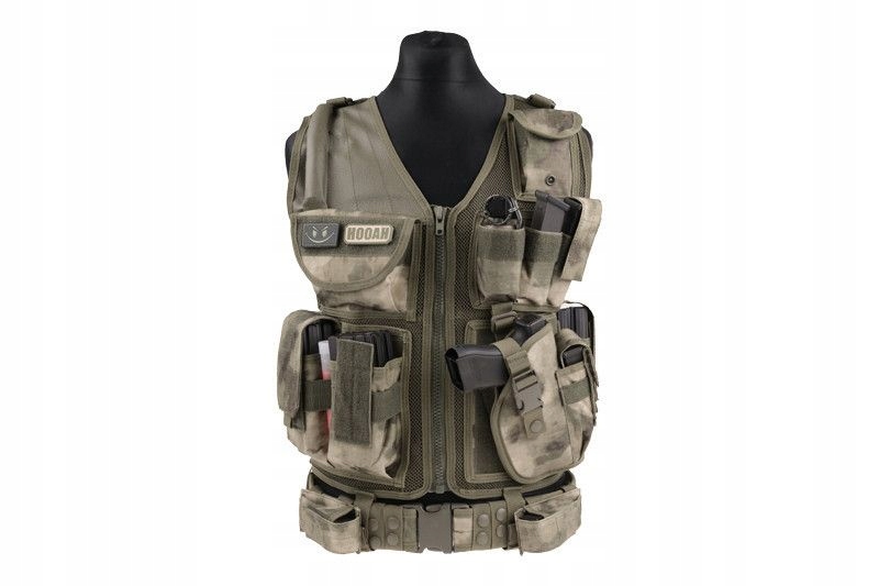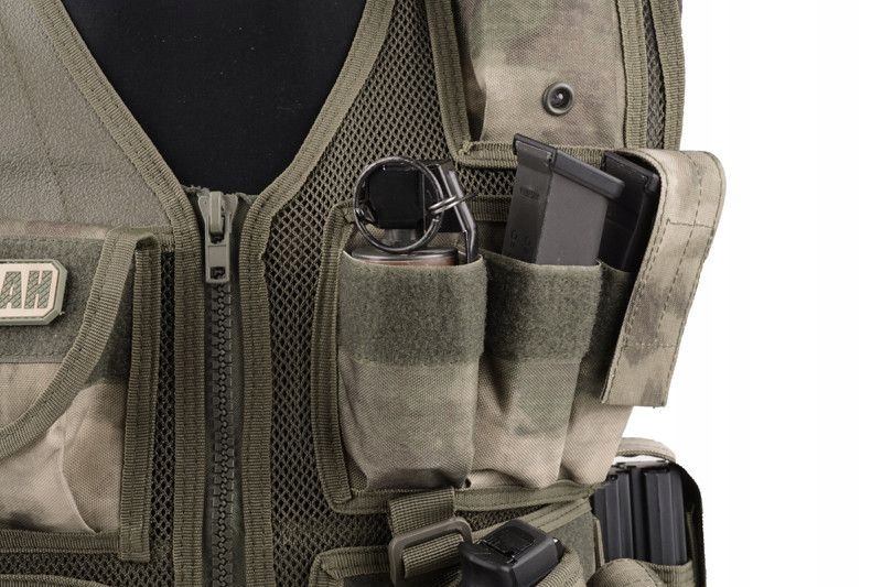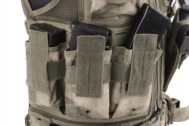 На лівому клапані є радіопідсумок, три підсумки під магазини для пістолетів і один підсумок для магазинів Stanag. Крім того, він має універсальну кобуру на липучці. У комплекті з жилеткою є пояс, який застібається на пряжку. Також на липучці до ременя кріпиться додатковий підсумок під пістолетний магазин. Пояс регулюється по окружності.