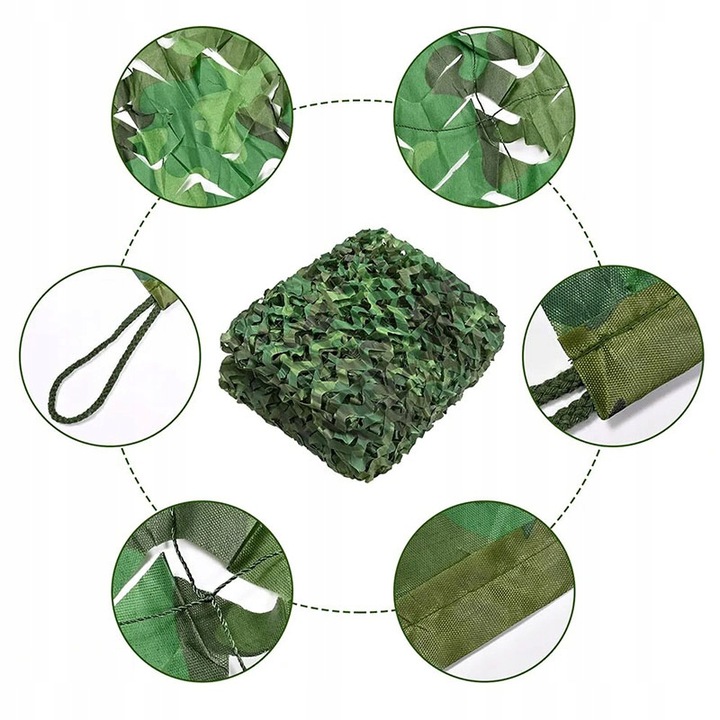 Sunshade: Камуфляжа сітка блокує близько 80% шкідливого випромінювання, таких як УФ -промені, забезпечуючи прохолодну та зручну область, яка ефективно захищає шкіру, сім'ю та предмети, які ви охоплюєте. Це хороший вибір на літо.