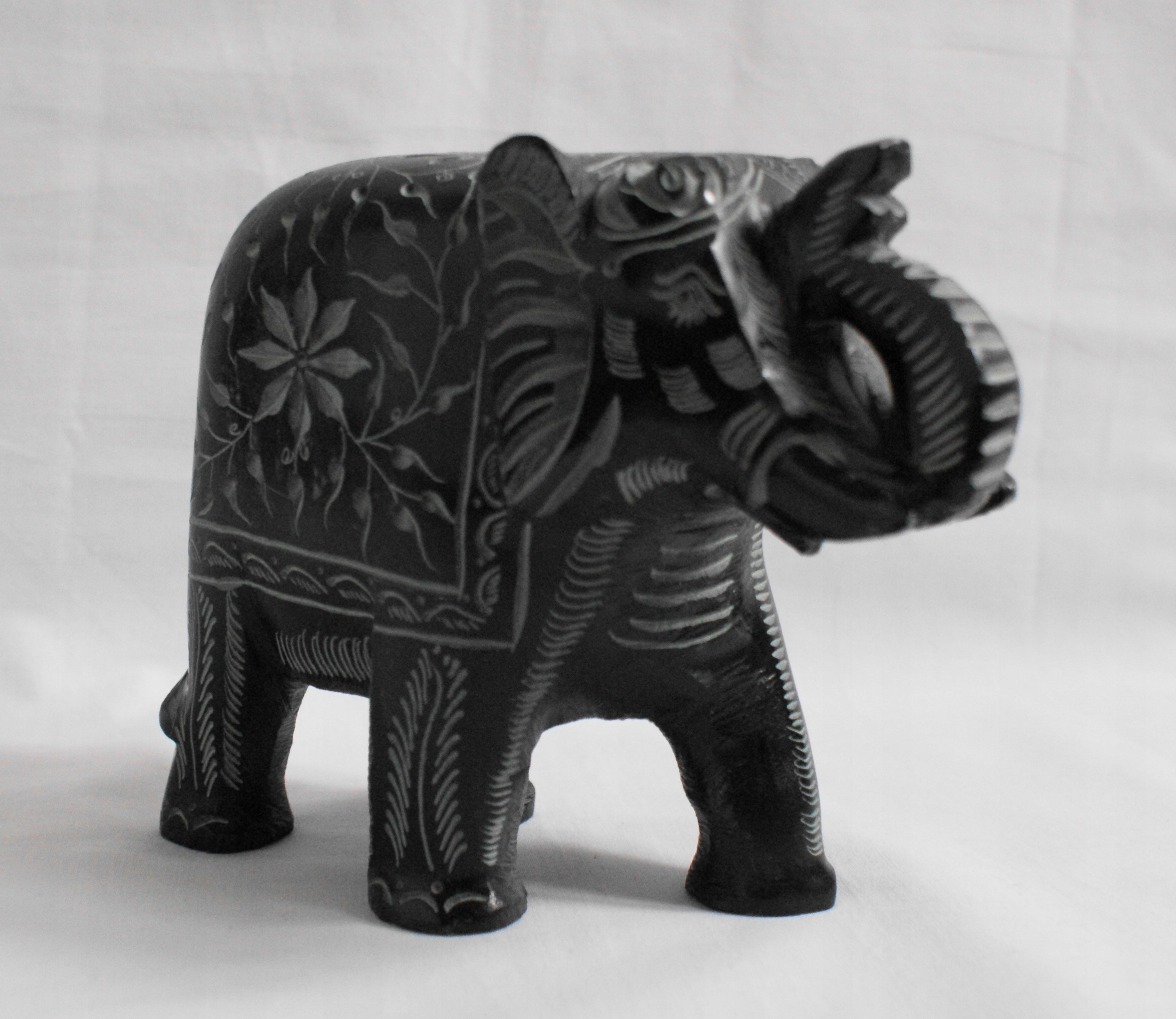 Кам'яний слон фігурка, ручний слон у чорному камені