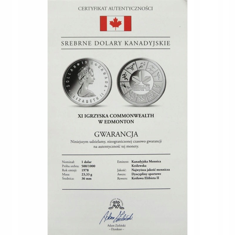 Канада, $1 1978, 11-ті Ігри Співдружності в Едмонтоні, срібло, сертифікат