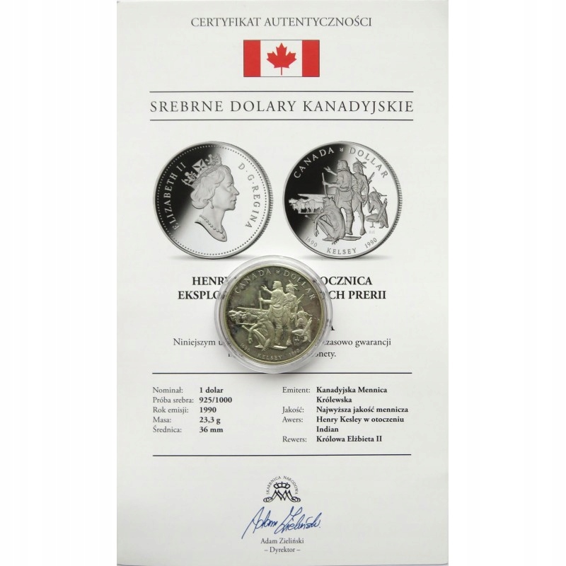 Канада, $1 1990, Генрі Келсі - дослідження прерій, срібло, сертифікат