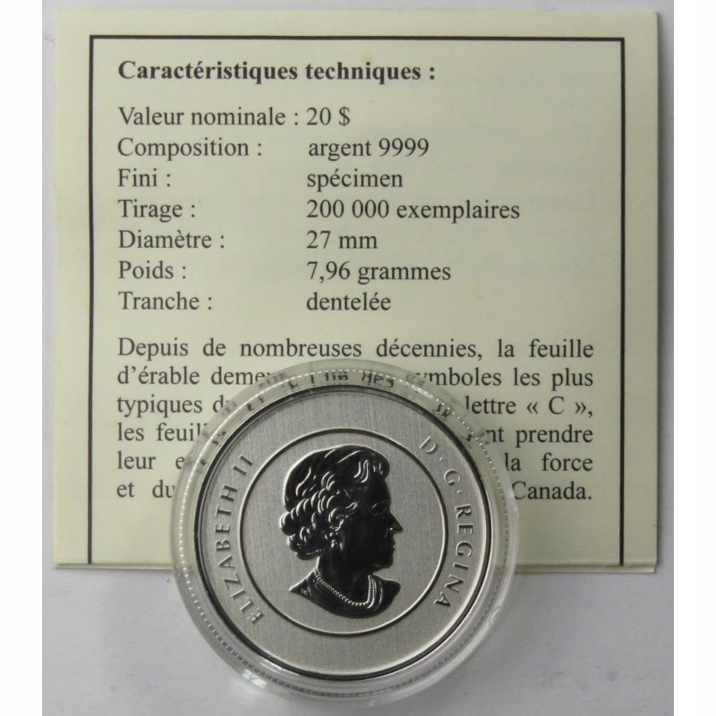Kanada 20 dolarów, 2011 Liście klonowe, srebro Ag999, certyfikat