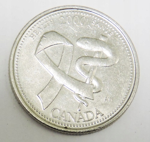Канада 25 центів 2000 Вага каталогу здоров'я -5,05 г - 23,88 мм нікель