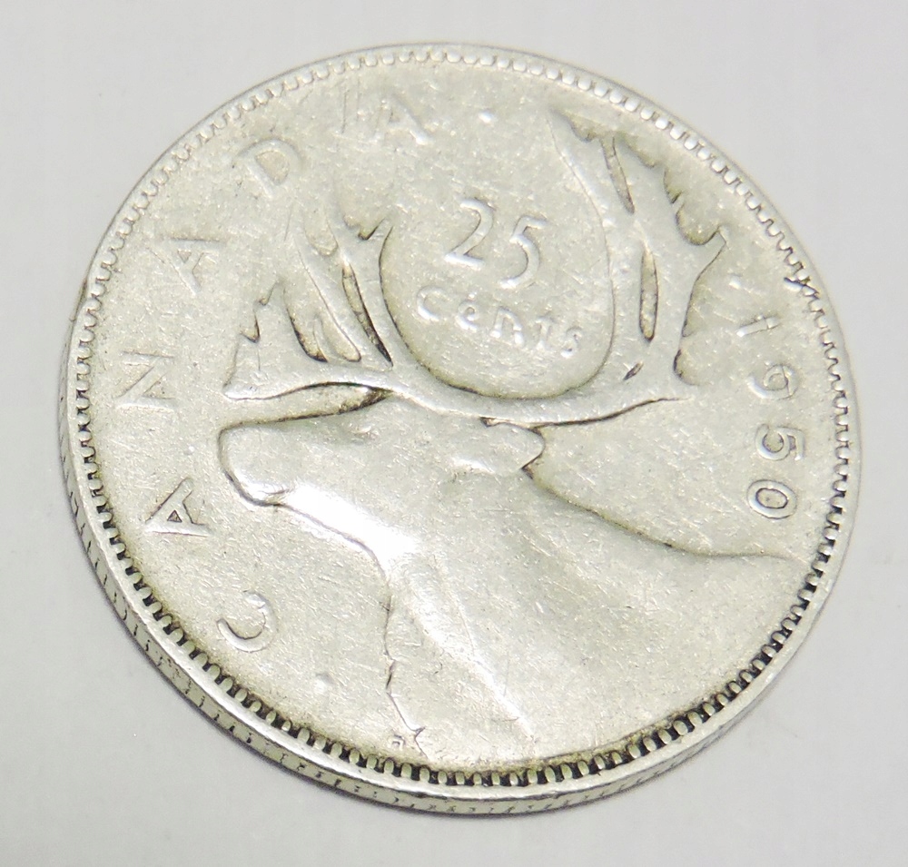 Канада 25 центів 1950 Каталог Вага 5,83 г срібла 800