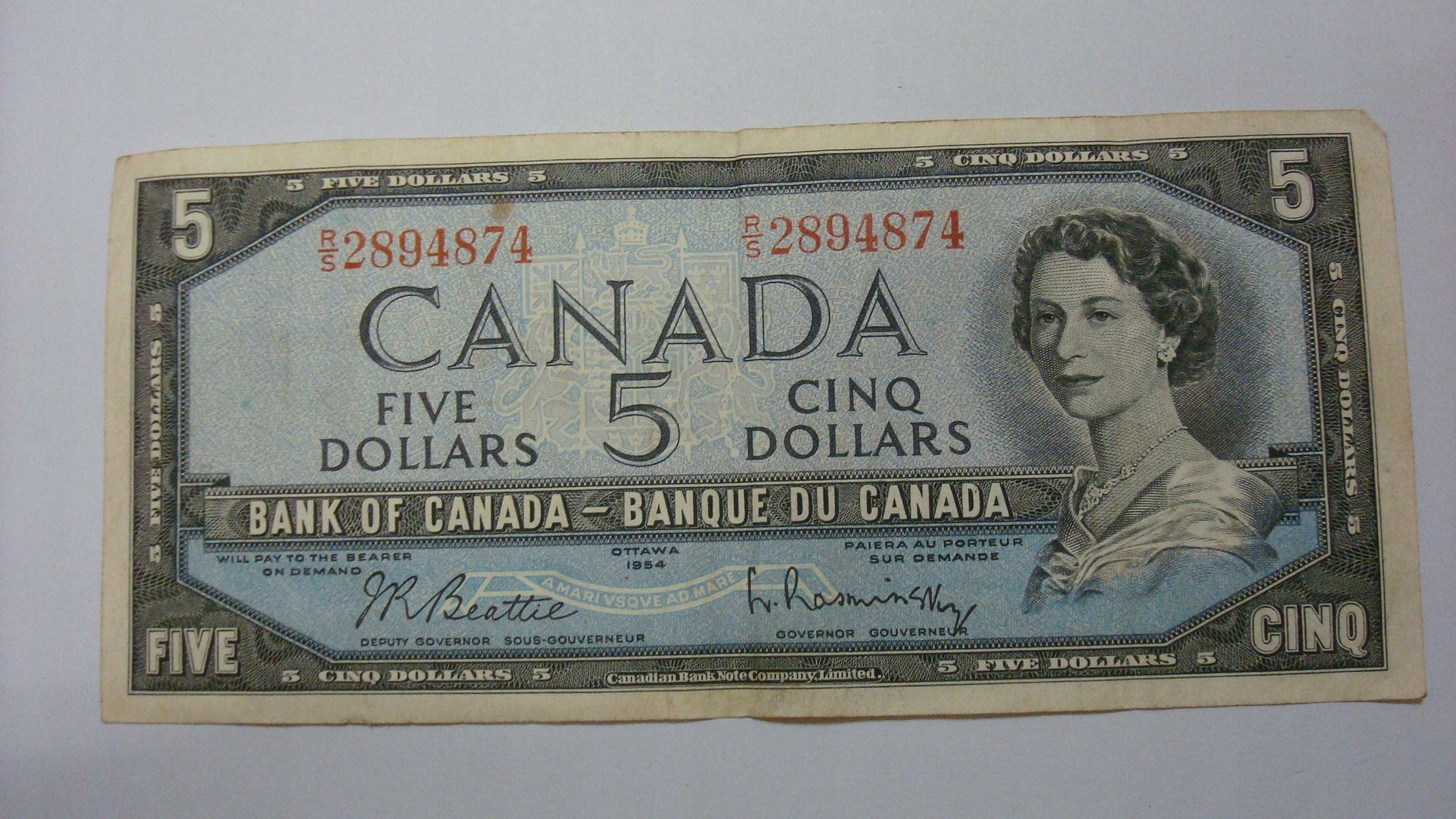 Канадська банкнота номіналом 5 доларів 1954 року стан 3