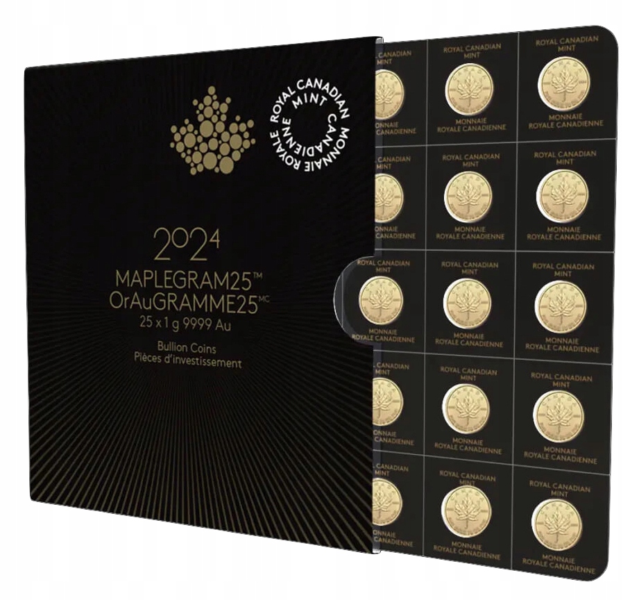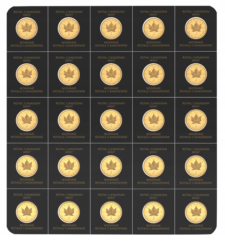 КАНАДСЬКИЙ КЛЕНОВИЙ ЛИСТ КЛЕНОВА МОНЕТА - 25 х 1 ГРАМ ЗОЛОТО 2024