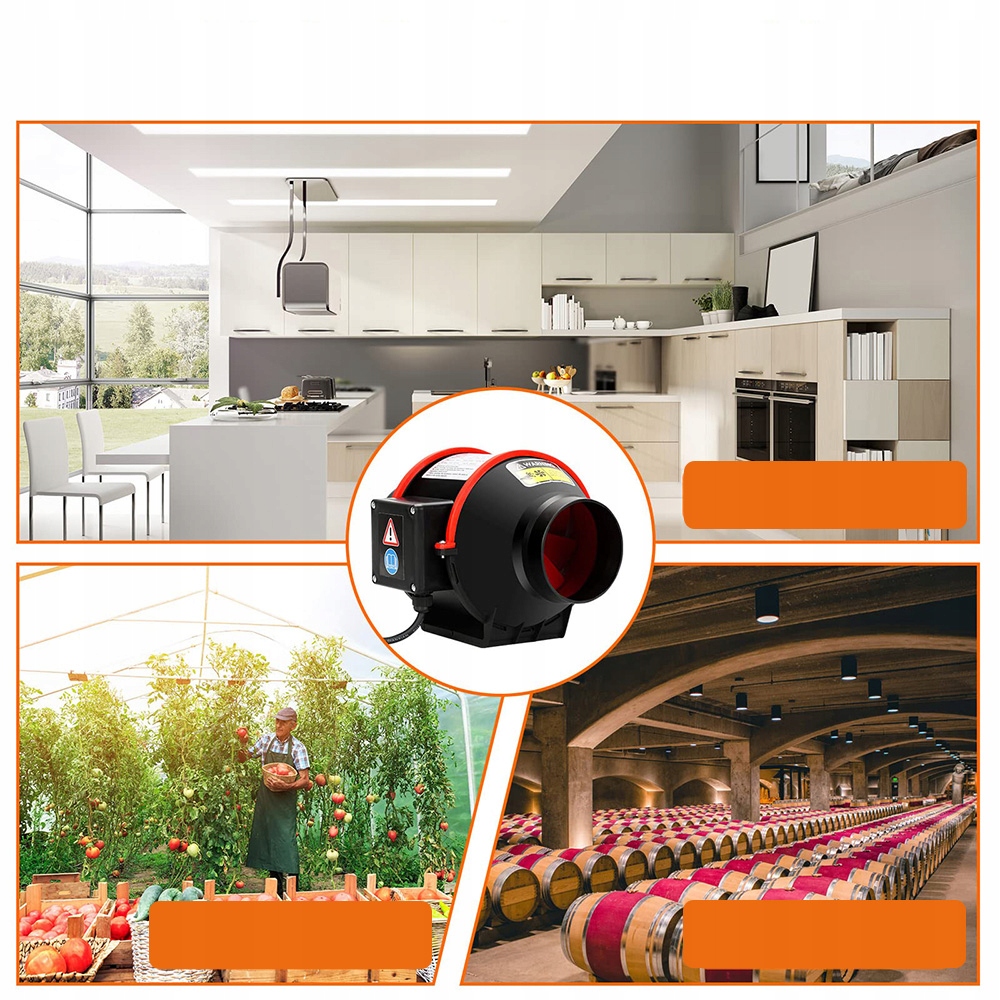 ▲Універсальне використання: Канальні вентилятори для вентиляції та очищення повітря в промисловості, домашньому господарстві та садівництві. Витяжні вентилятори для ванних кімнат, майстерень, кухонь, підвалів, теплиць, наметів для вирощування тощо.