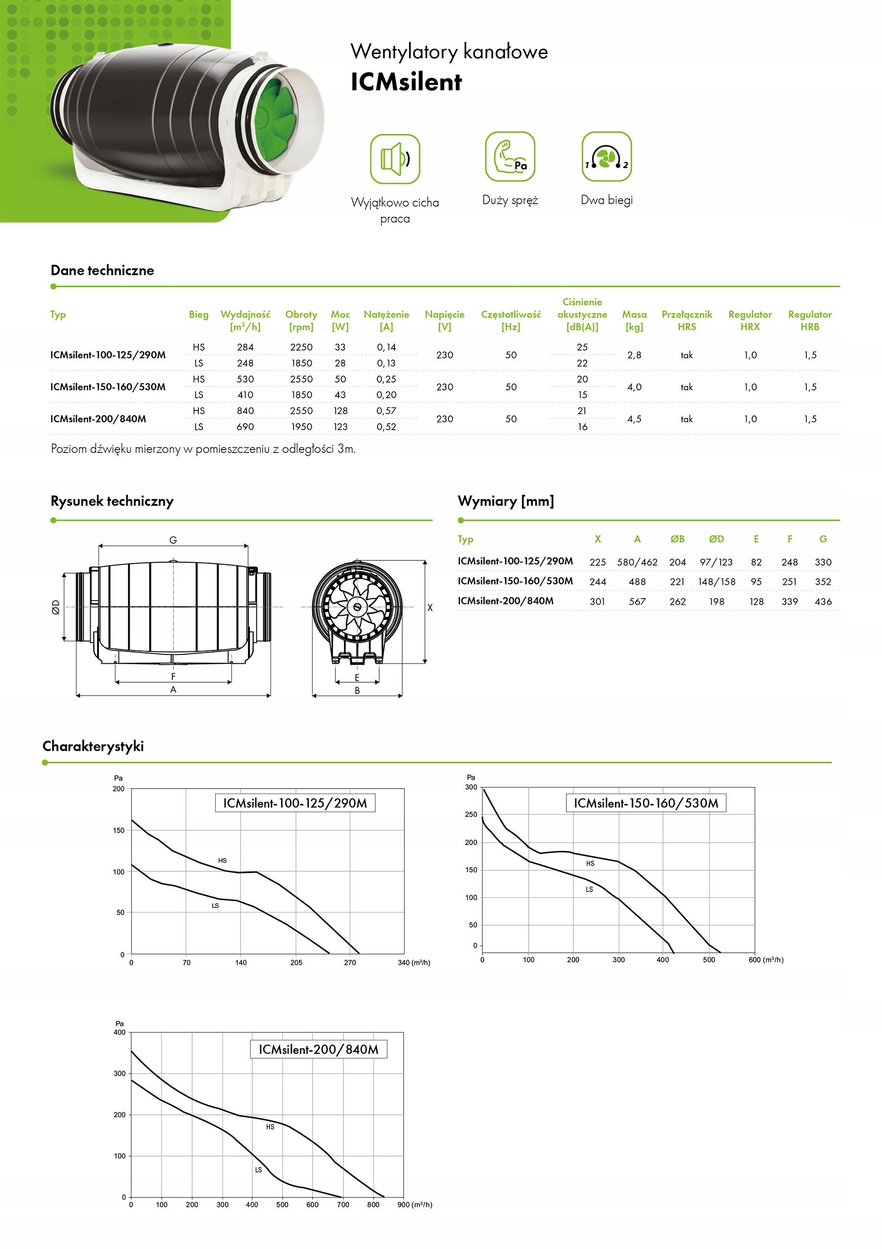 Діагональний канальний вентилятор. Його унікальна конструкція забезпечує низький рівень шуму завдяки використанню перфорованої внутрішньої частини корпусу та подвійного шару звукопоглинального матеріалу. Корпус вентилятора виготовлений з поліпропілену, а робоче колесо виготовлено з ABS-пластику. Прилад оснащений вбудованою зворотною заслінкою. Спеціальні роз'єми полегшують монтаж і демонтаж пристрою та його обслуговування. Вентилятор можна встановити як у горизонтальному, так і у вертикальному положенні.