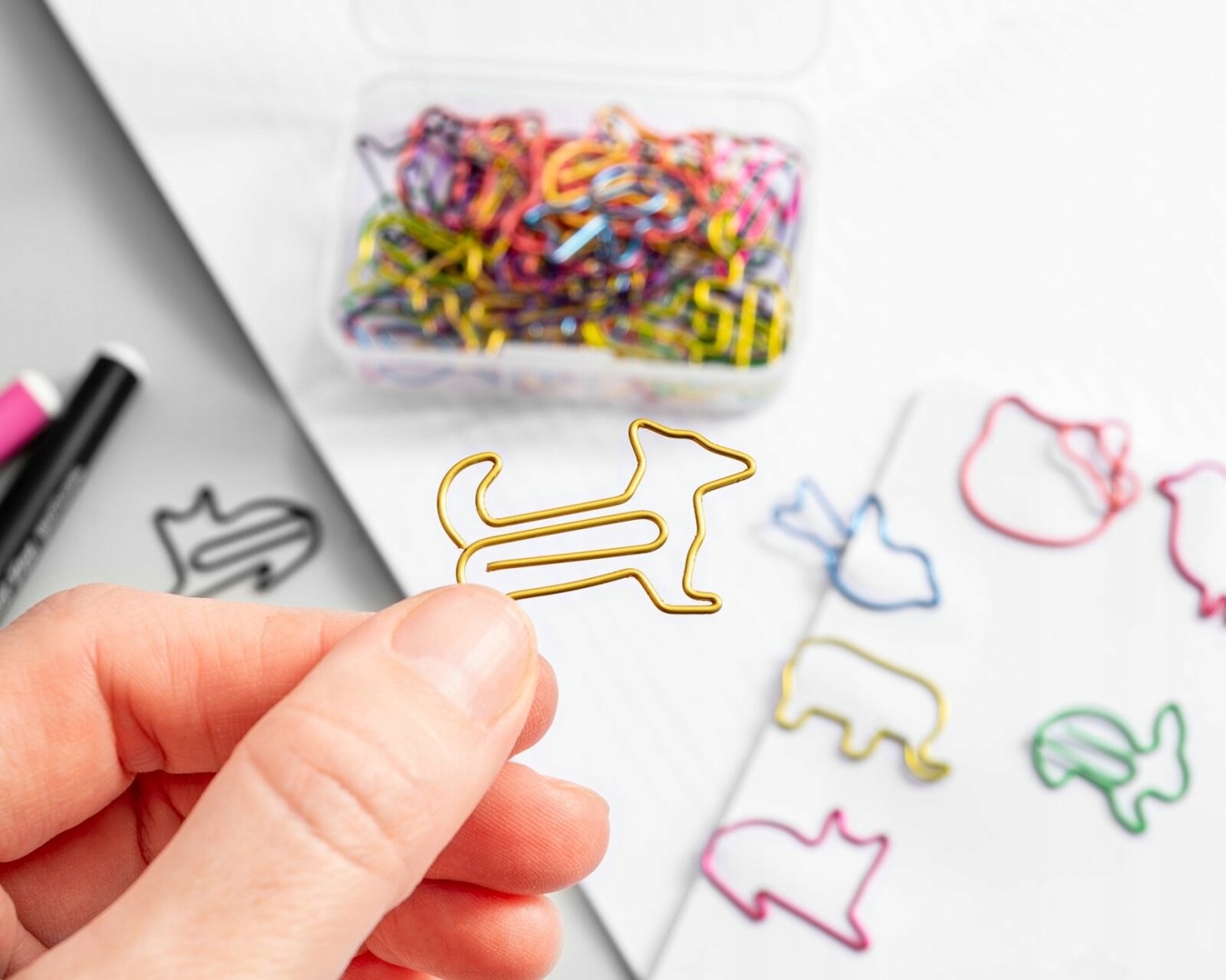 Металеві скріпки в гнучкій і барвистій футболці у формі тварин :) Тваринки створені, щоб допомогти вам упорядкувати документи, замітки чи фотографії або позначити важливий чи цікавий фрагмент у книзі чи газеті, до якого ви хочете повернутися, і водночас своїм веселим виглядом вони створять дружню атмосферу, а іноді й посмішку на вашому обличчі :) Як це часто буває у світі тварин, вони розважать вас, не втомлюючись. наведіть порядок у своїх документах і стежте за позначкою важливої сторінки, виглядаючи бадьоро :)
