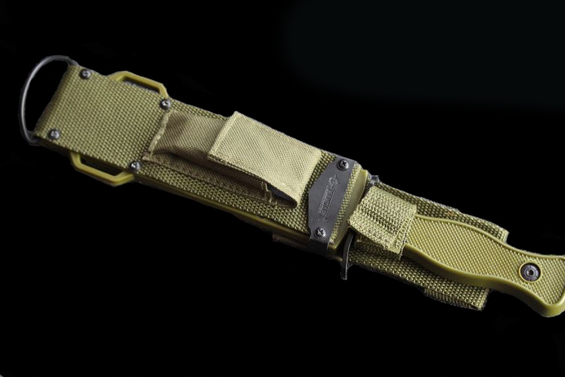Ніж поставляється з чохлом із пластику та нейлону "Heavy Duty", додатково укріпленим металом. пряжка. На чохлі також є кишенька, в якій знаходиться точилка. Чохол також має кріплення, яке дозволяє прикріпити ніж.
