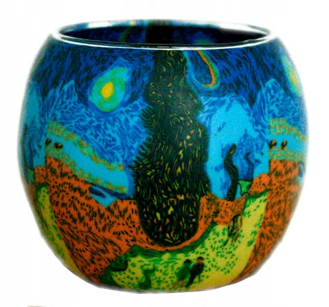 Фімо -глинисті шматки, що нагадують моделювання глини, складаються на візерунки, потім розрізають шматочки та приклеєні безпосередньо на скляні ліхтарі, створюючи унікальний візерунок. продукт.