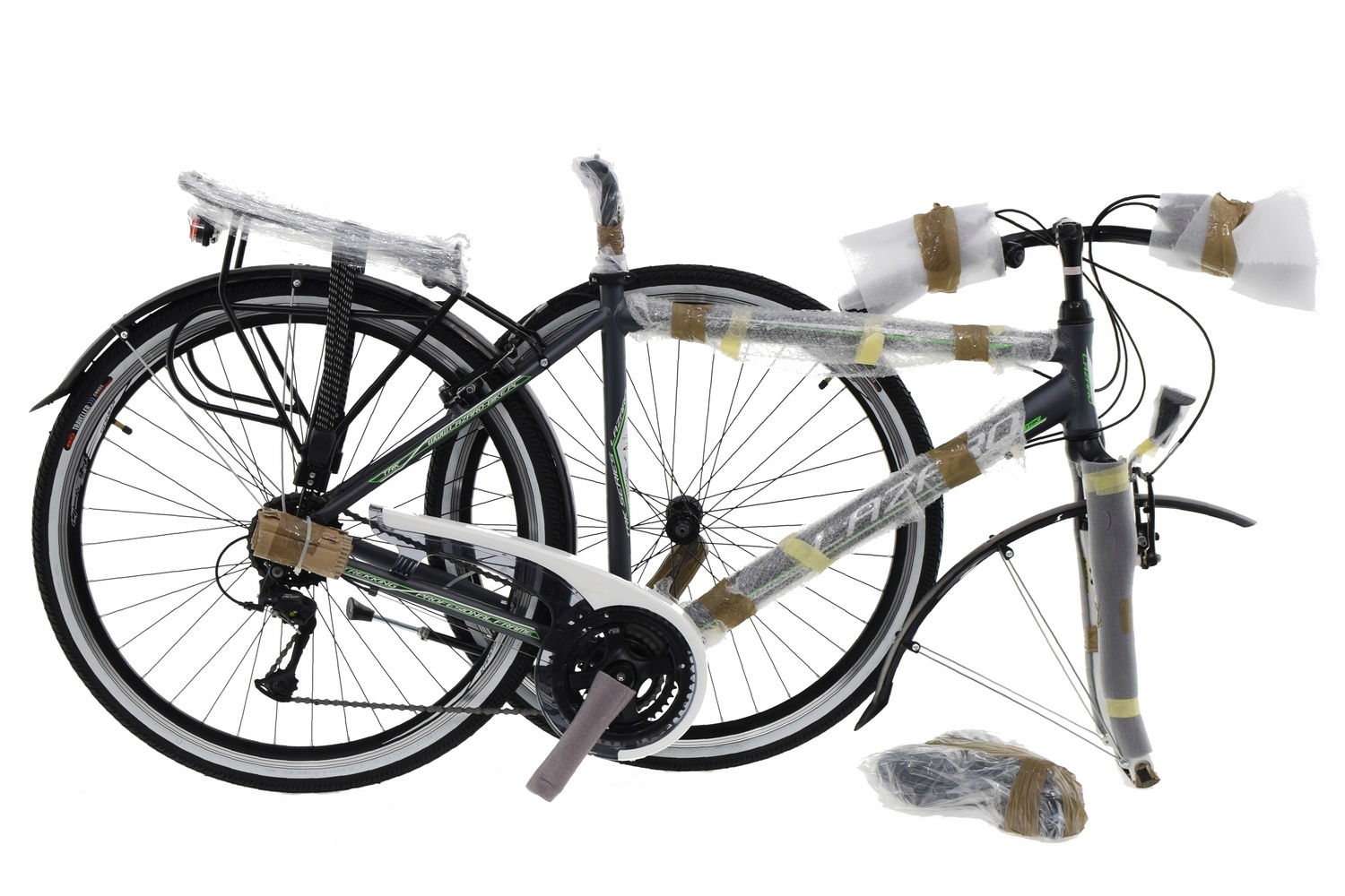 Алюміній і повністю оснащений освітленням, бризковиками і багажником . Він має раму з міцного алюмінієвого сплаву AL6061, який є основою для решти компонентів.