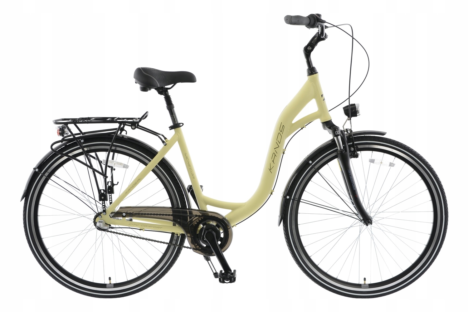 Модель Wenecja розроблена відповідно до категорії CITY, тобто ідеально адаптована до міського середовища. Велосипед орієнтований на комфорт їзди, безвідмовну роботу та просте керування. Рама та компоненти велосипеда виготовлені з високоякісного алюмінієвого сплаву та пластику, тому споживачеві не доведеться турбуватися про погодні умови, які можуть сприяти корозії велосипеда. Велосипед розроблено як міцну конструкцію, яка прослужить роками.