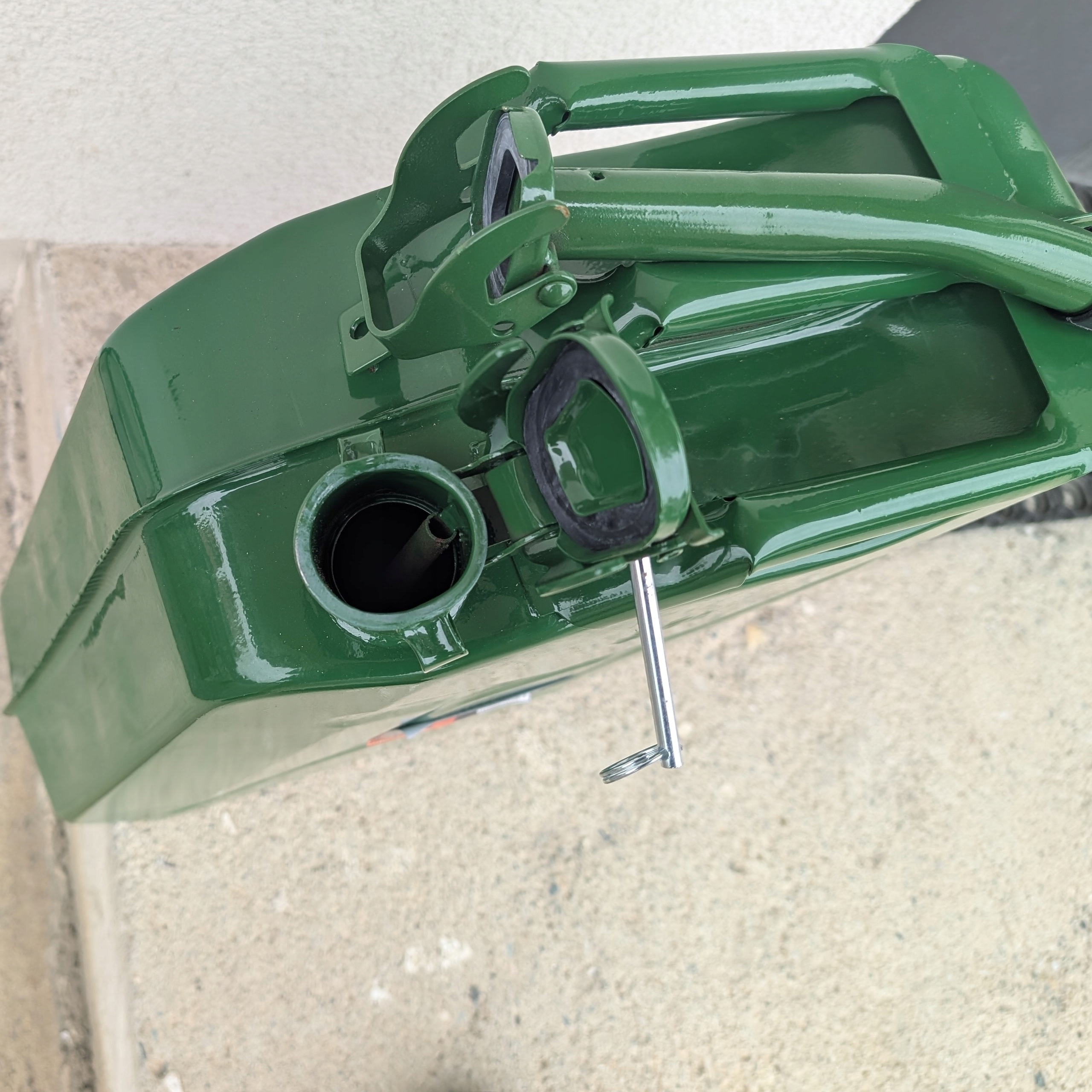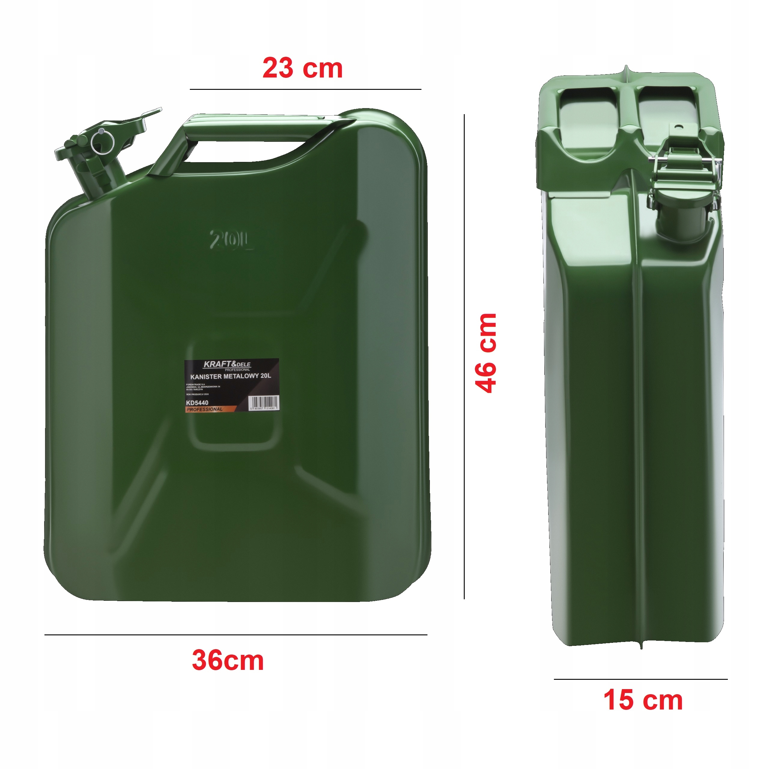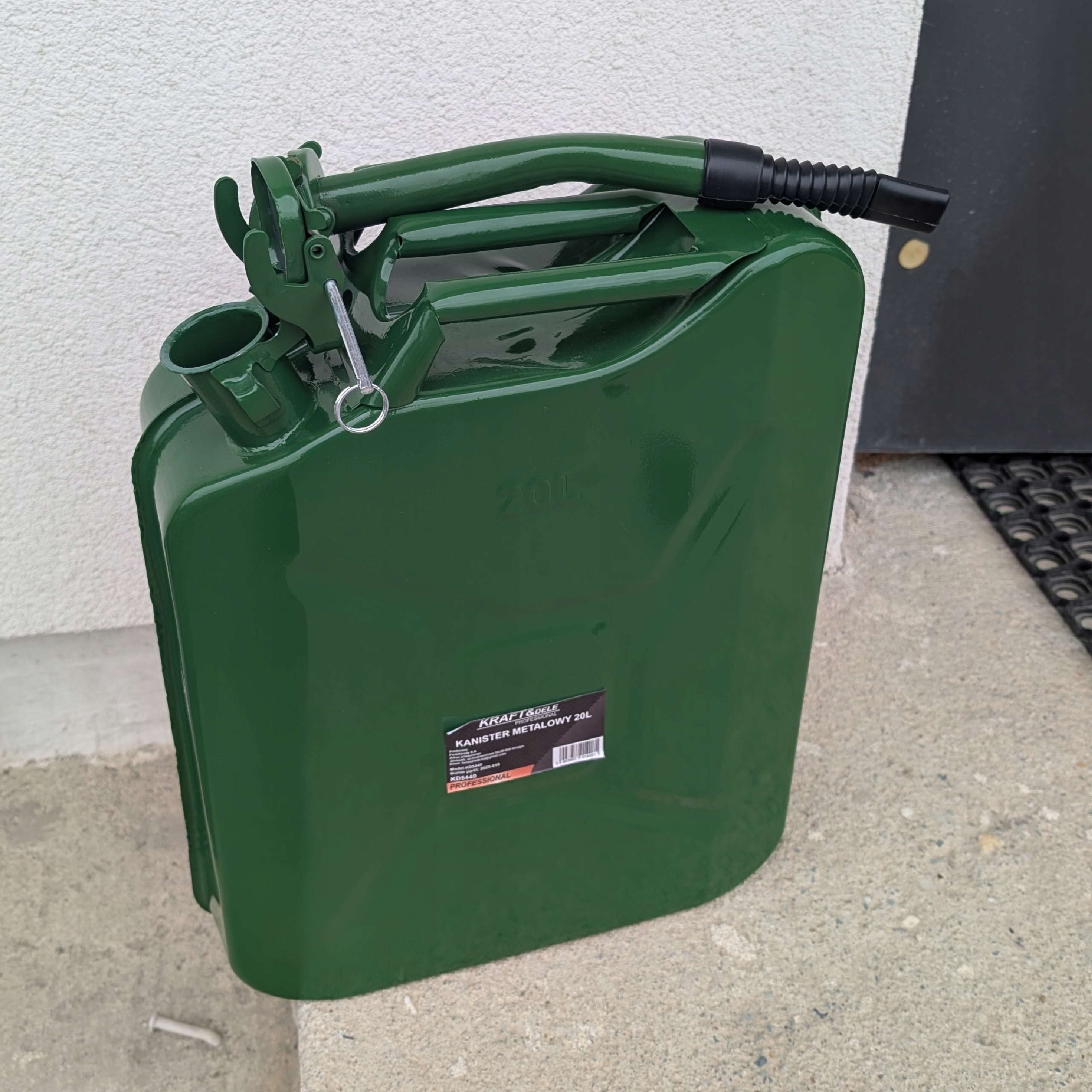 Металева каністра зі сталевого листа з порошковим покриттям з обох боків, що робить її дуже стійкою до корозії, механічних пошкоджень і погодних умов.