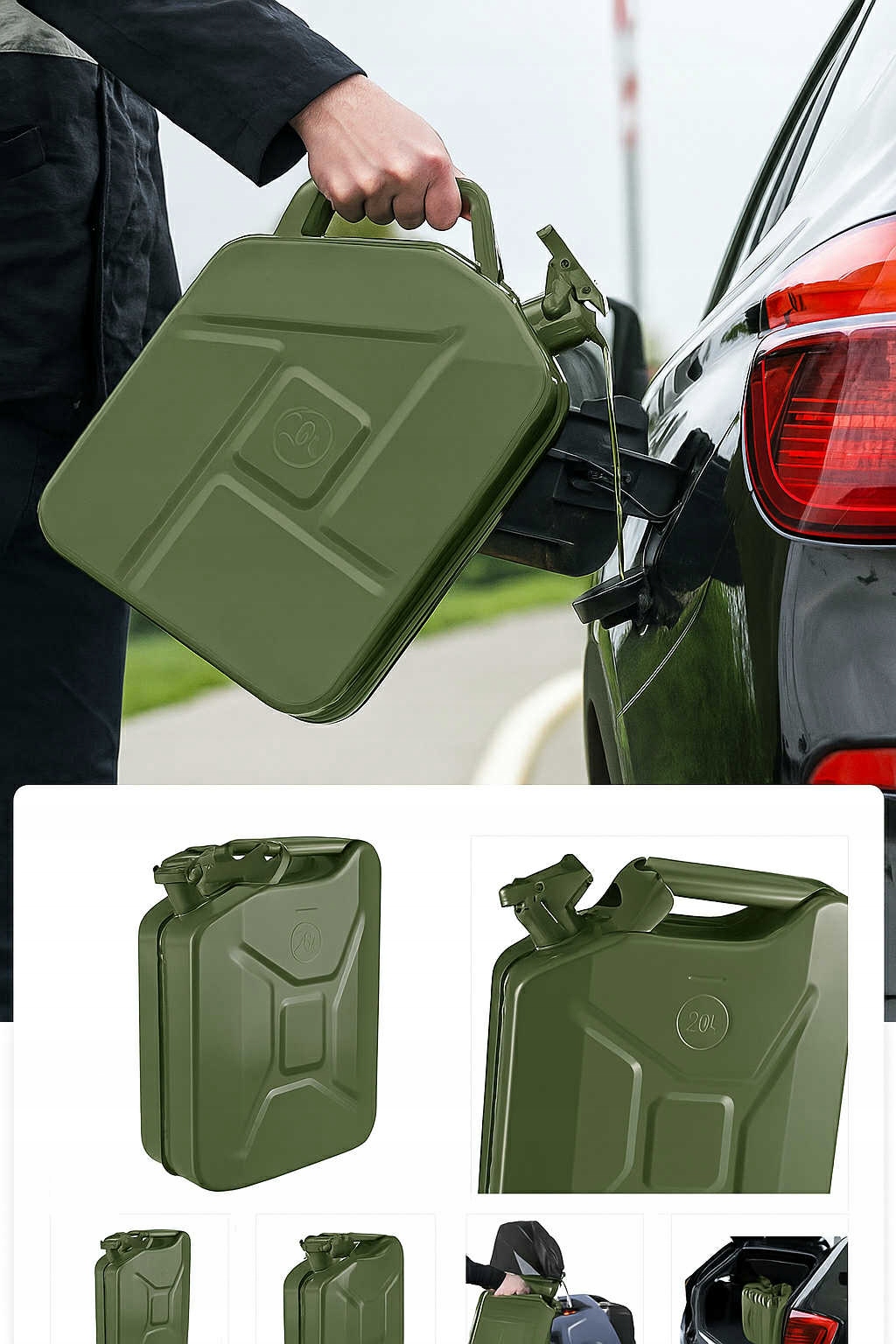 - Міцний бак ємністю 10 літрів, виготовлений із пресованої сталі з порошковим покриттям. Підходить для зберігання та транспортування бензину, сирої нафти, дизельного палива та мазуту. Оснащений герметичною кришкою з байонетним замком, додатковим "L"-подібним штифтом і зручною ручкою для перенесення.