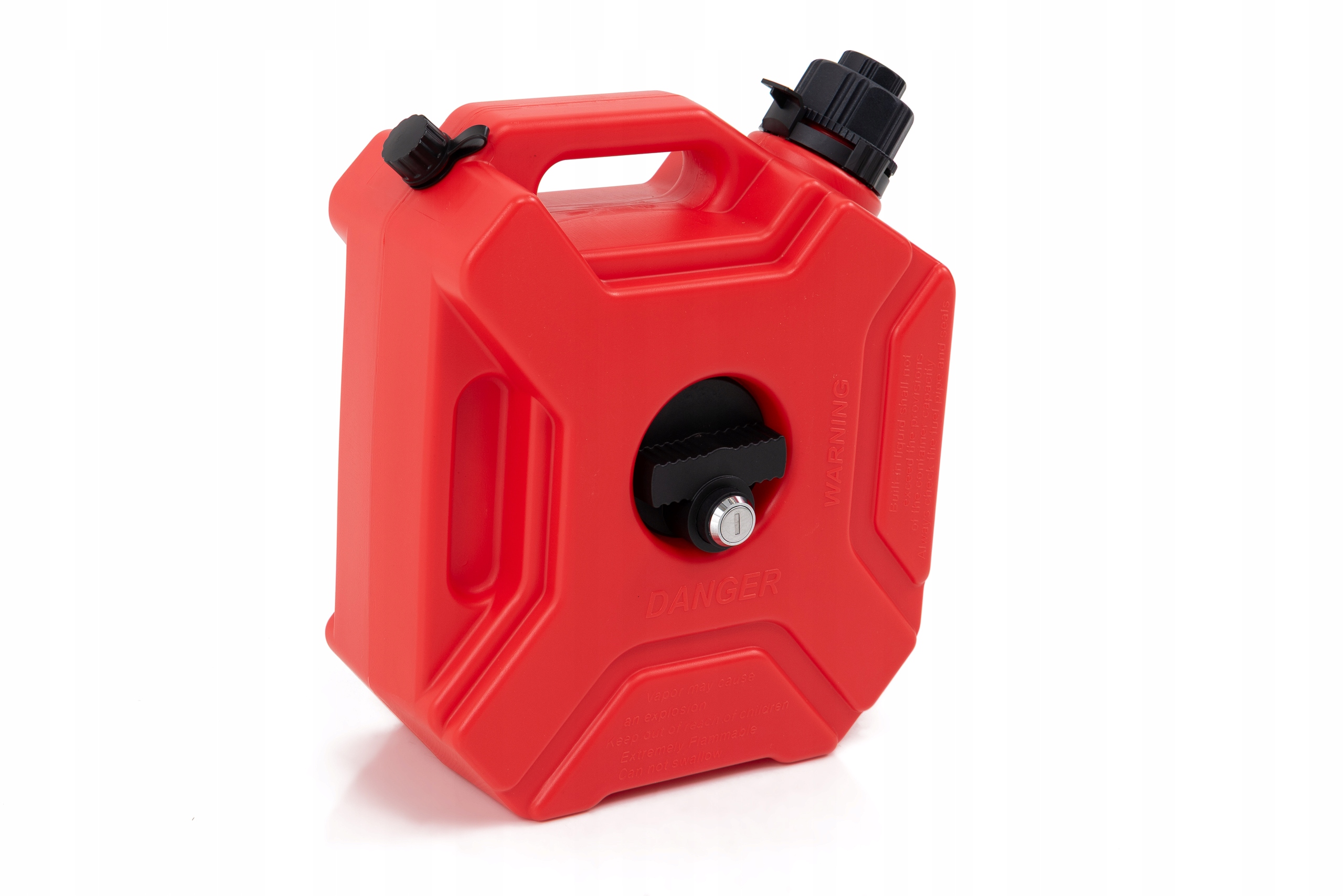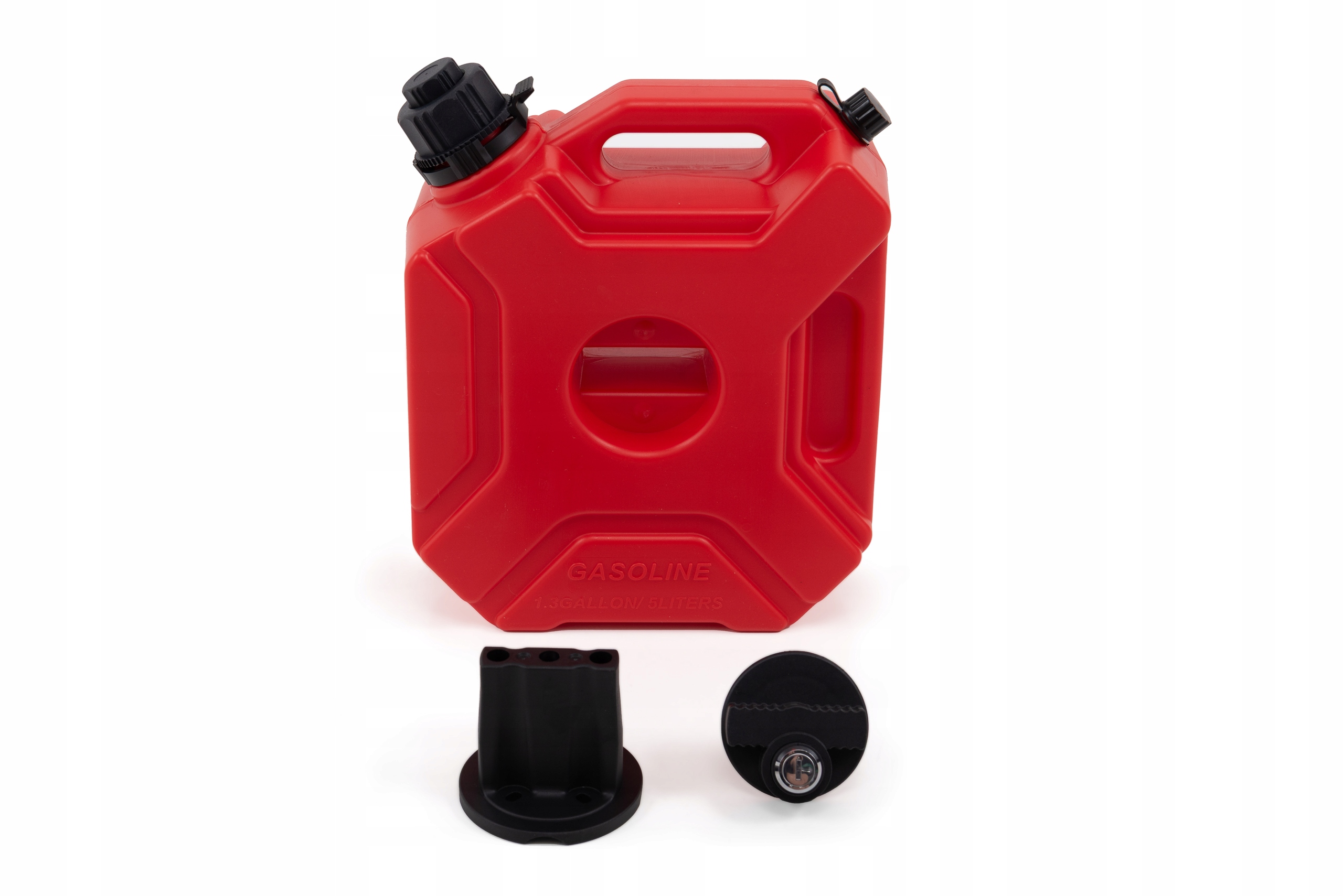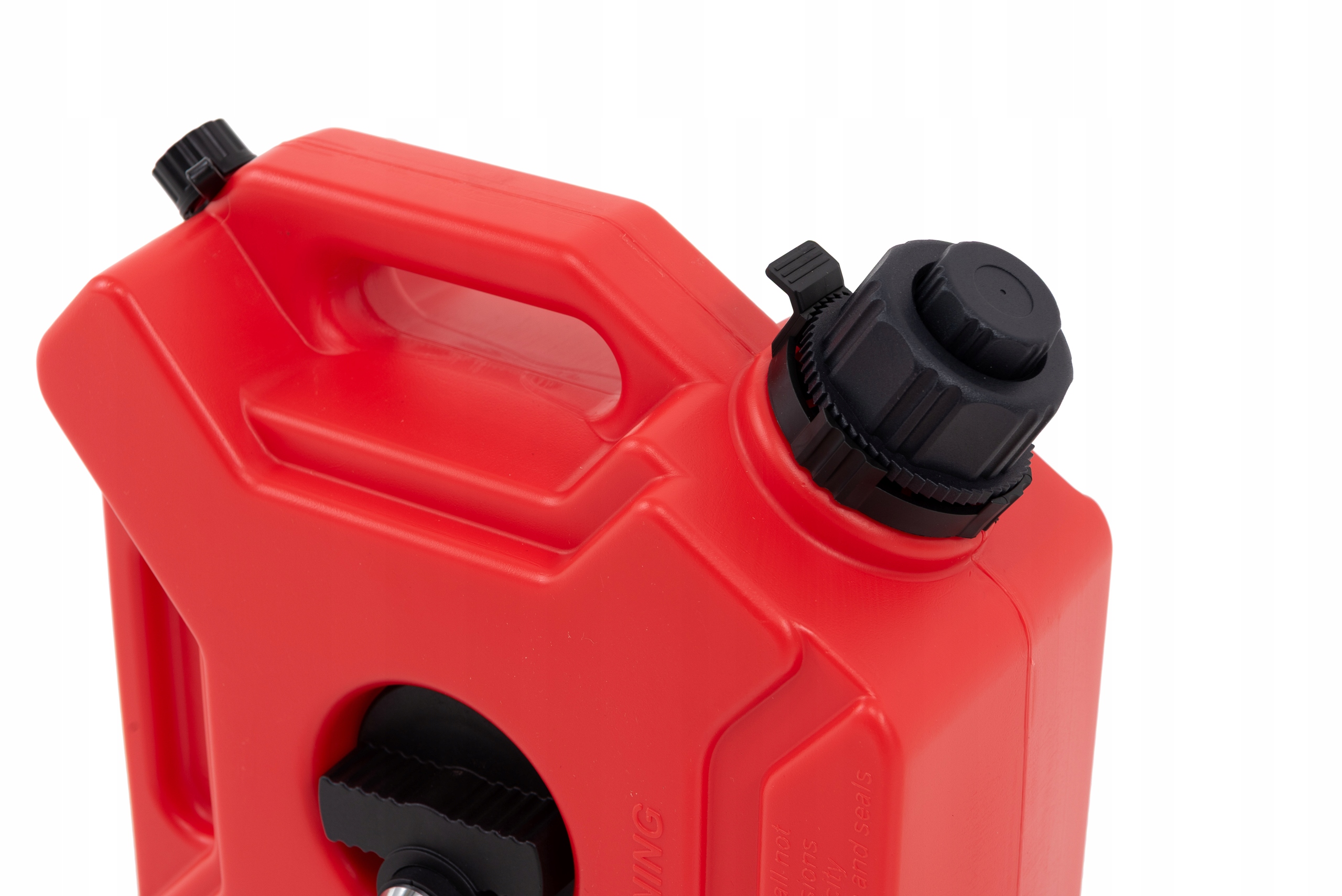 каністра палива, бензин, з воронкою, червоним кольором з потужністю 5 л. Набір включає спеціальне кріплення.