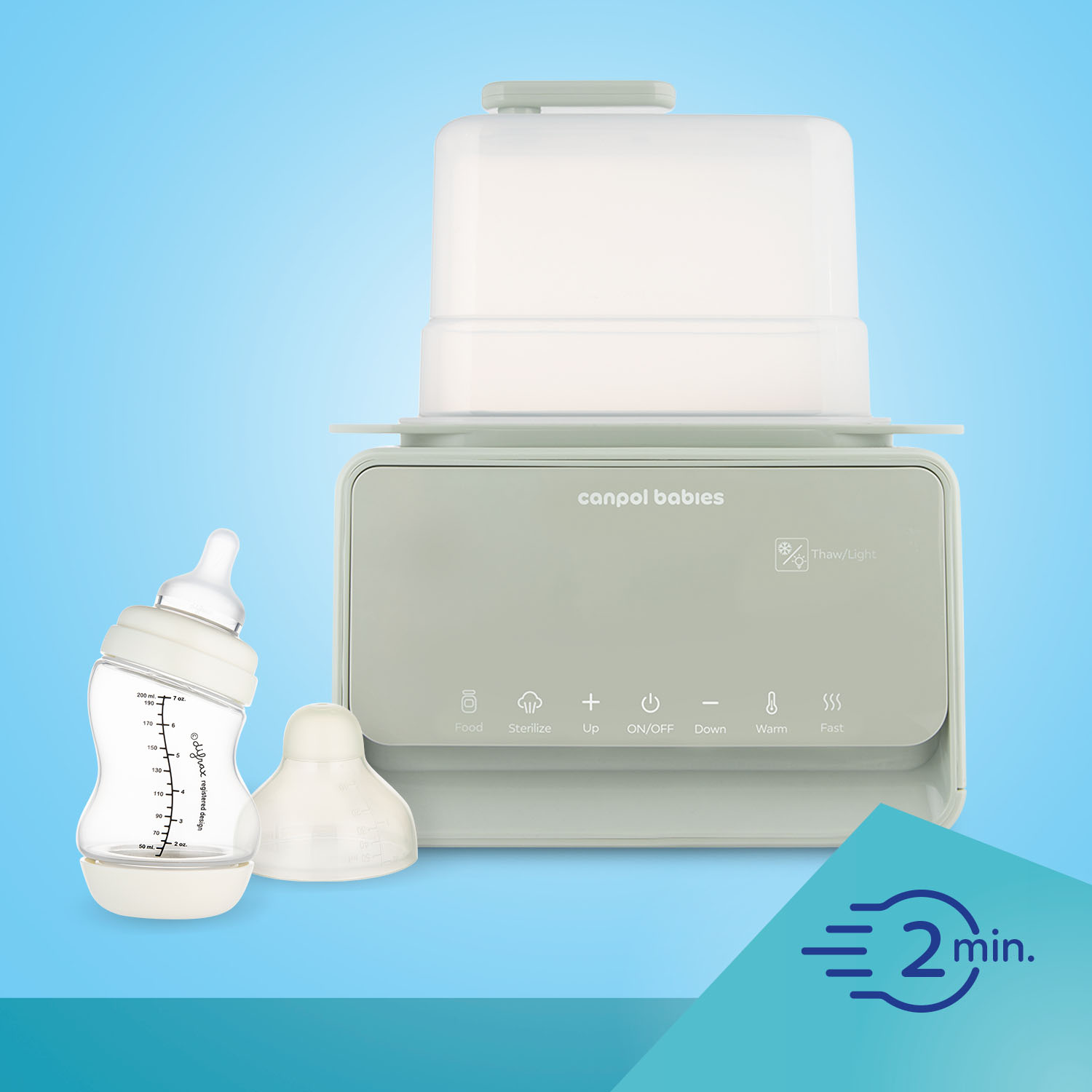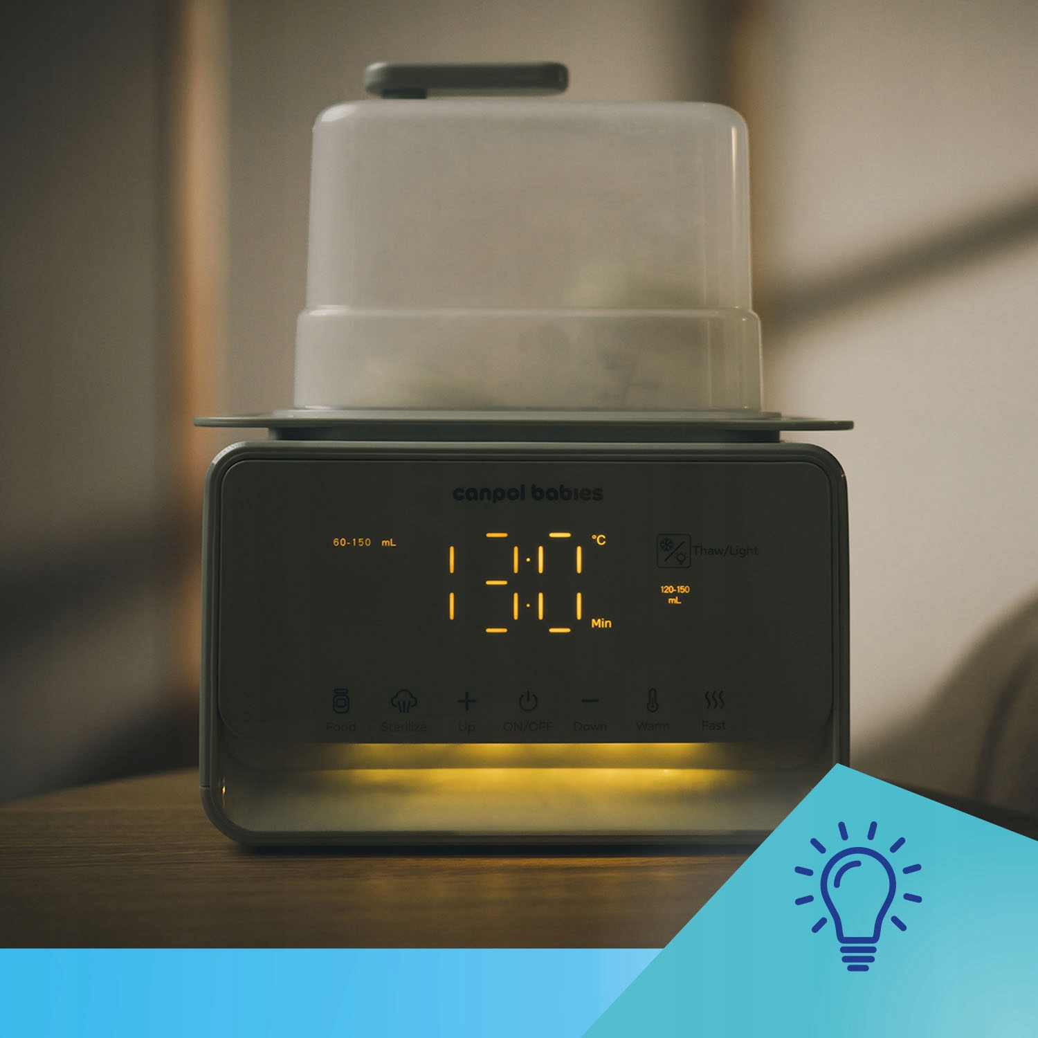 Новий! Немовлята з термостатом та лампою -це багатофункціональний пристрій, який полегшує швидку та просту підготовку їжі для дитини. Він має 7 режимів експлуатації: нагрівання молока, нагрівання банок, швидке нагрівання (за 2-3 хвилини), підтримка температури, відтавання, стерилізації та функції ліжка. Надзвичайно швидко нагріває молоко- готовий навіть за 2-3 хвилини , залежно від розміру пляшки. Завдяки побудованому термостату він підтримує температуру їжі всю ніч - до 10 годин, в той же час для двох пляшок . Це дозволяє вводити їжу саме тоді, коли вона потрібна, забезпечуючи комфорт та заощадження часу. 4