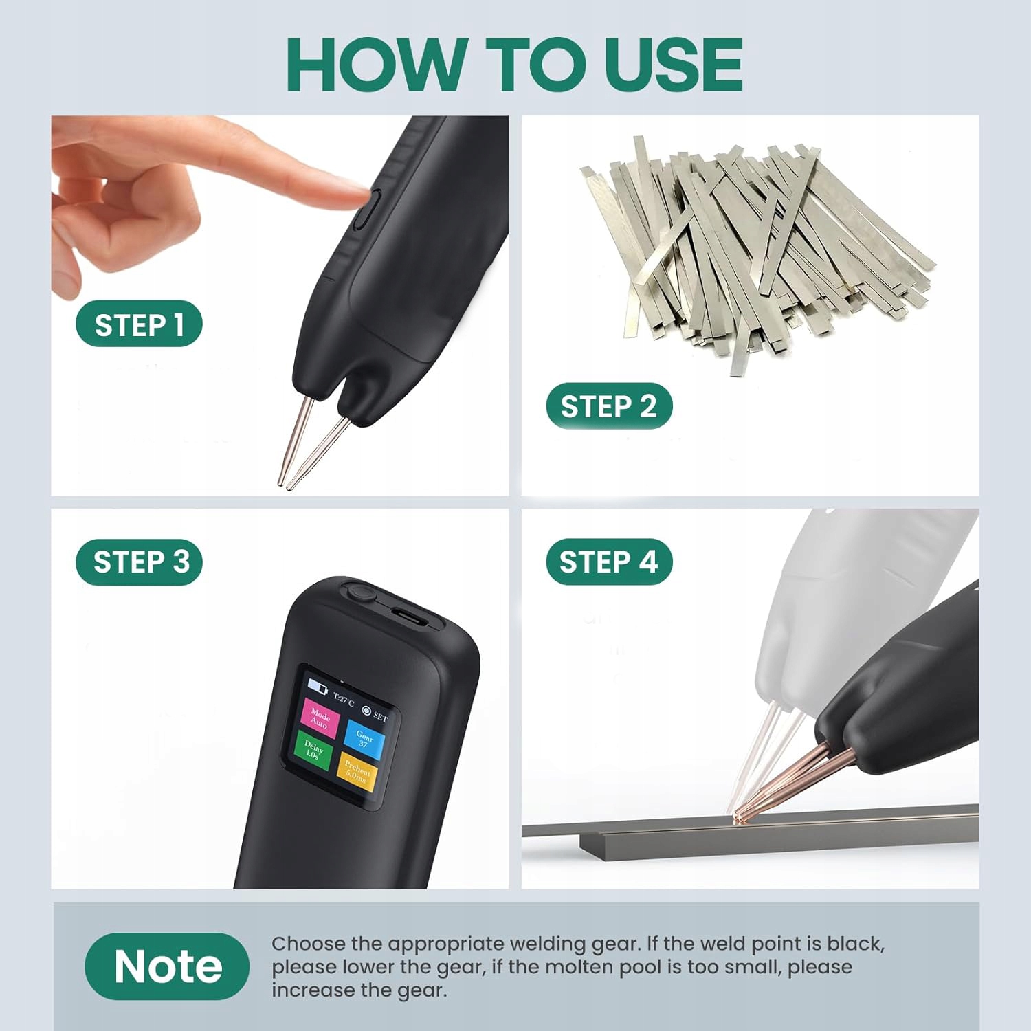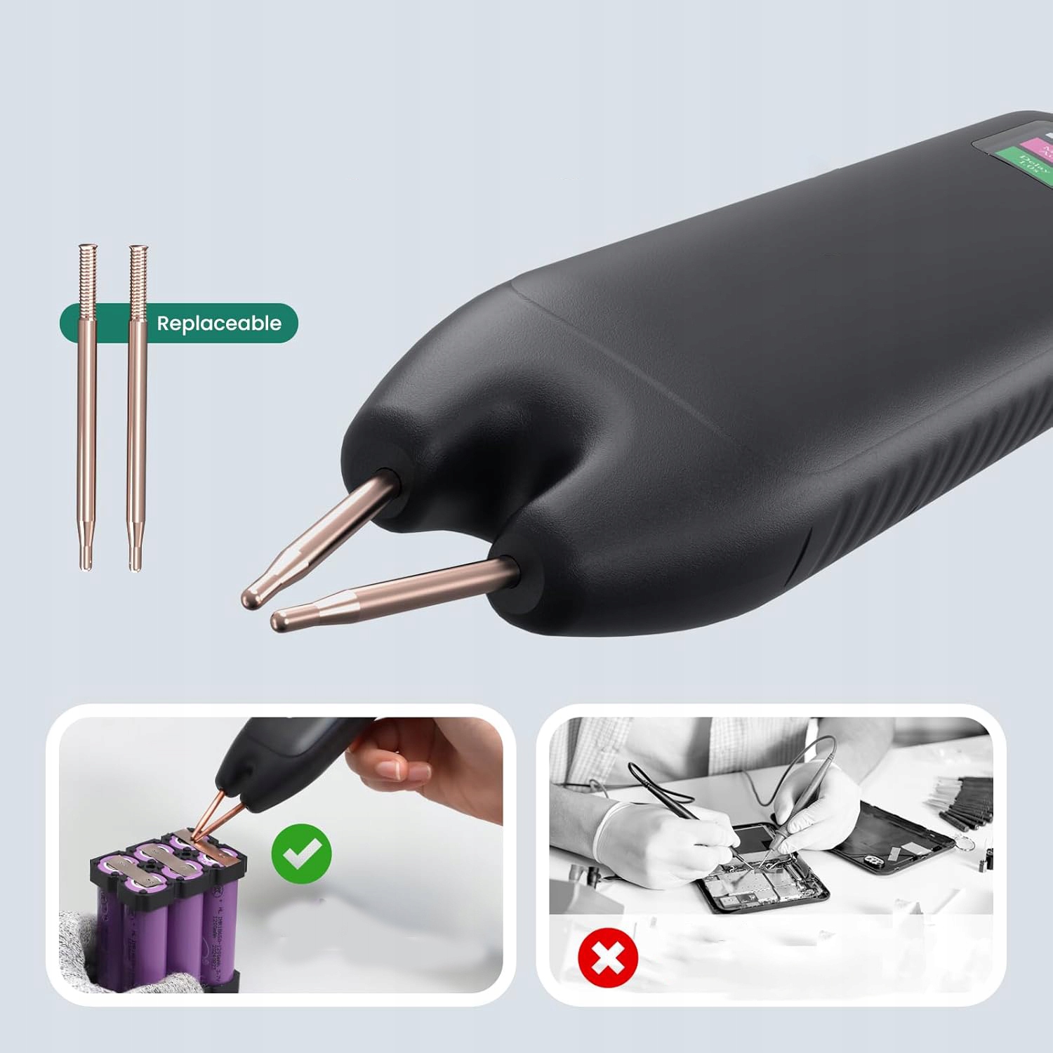 ручний зварювач ідеально підходить для зварювання електронних пристроїв, які не змогли пошкодити акумулятор, а також різні типи акумуляторів, таких як циліндричні акумулятори, акумулятори з нержавіючої сталі та паяльні з'єднання є міцними та прекрасними.