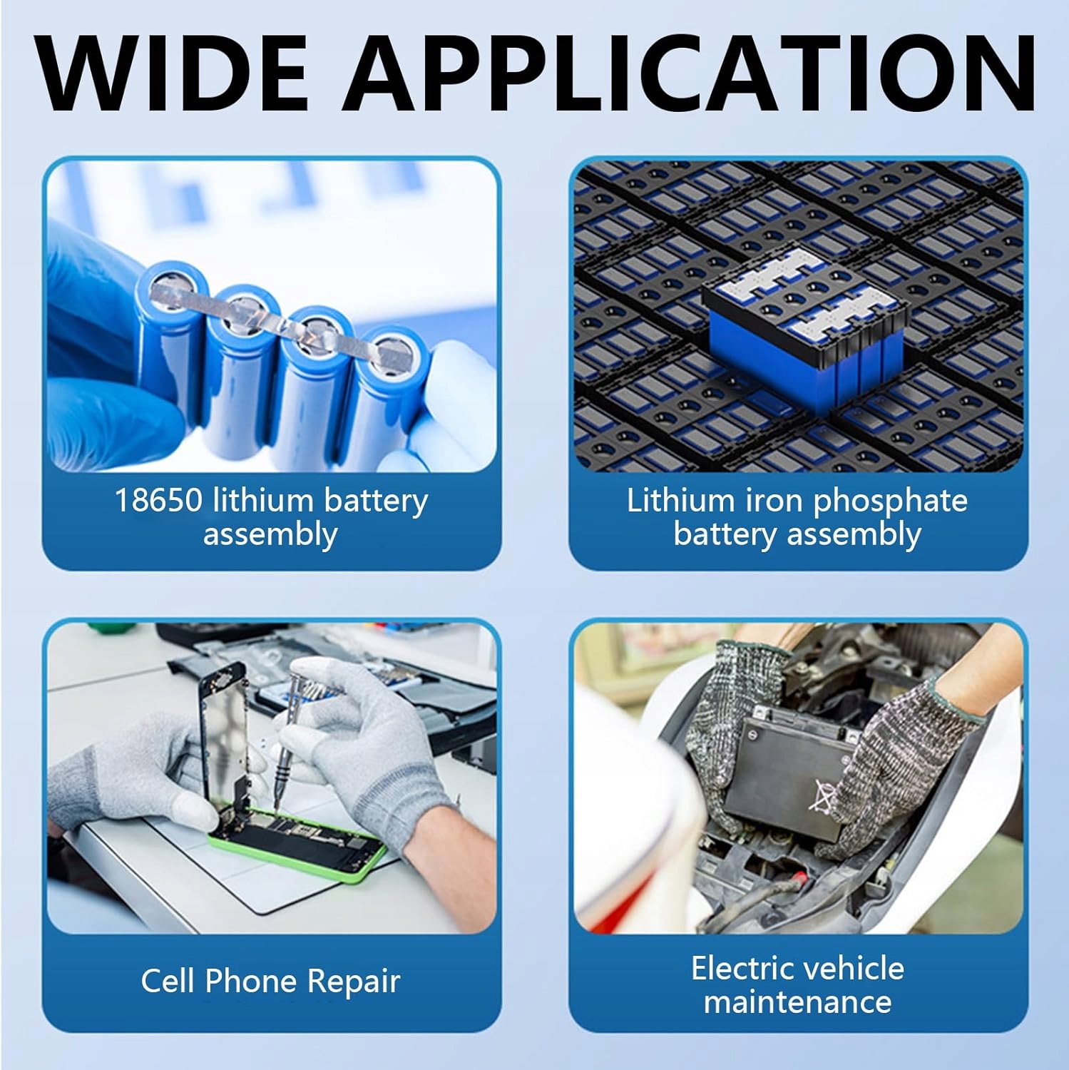 Товщина зварювання до 0,25 мм! Можливість зварювання різних специфікацій, нікель-зварювальне зварювання 0,10 мм ~ 0,25 мм нікель-покриття, точкове зварювання для акумуляторів для складання літій-акумуляторів 18650, складання акумуляторів-фосфатів літію, фонду, ремонт мобільних телефонів, ремонт електромобілів!