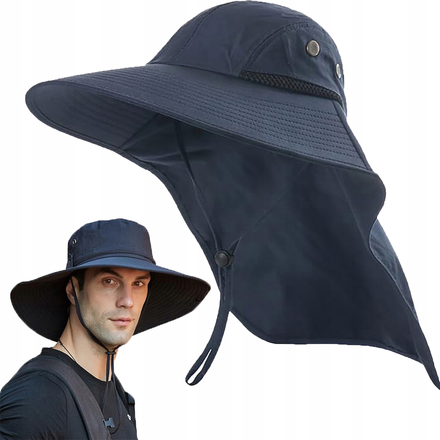 КАПЕЛЮХ АНТИ УФ-СІМ, РИБАЛЬСЬКИЙ КАПЕЛЮХ ІЗ ЗАХИСТОМ ШИЇ, РЕГУЛЮВАННЯ ТЕМНО-СИНЯ