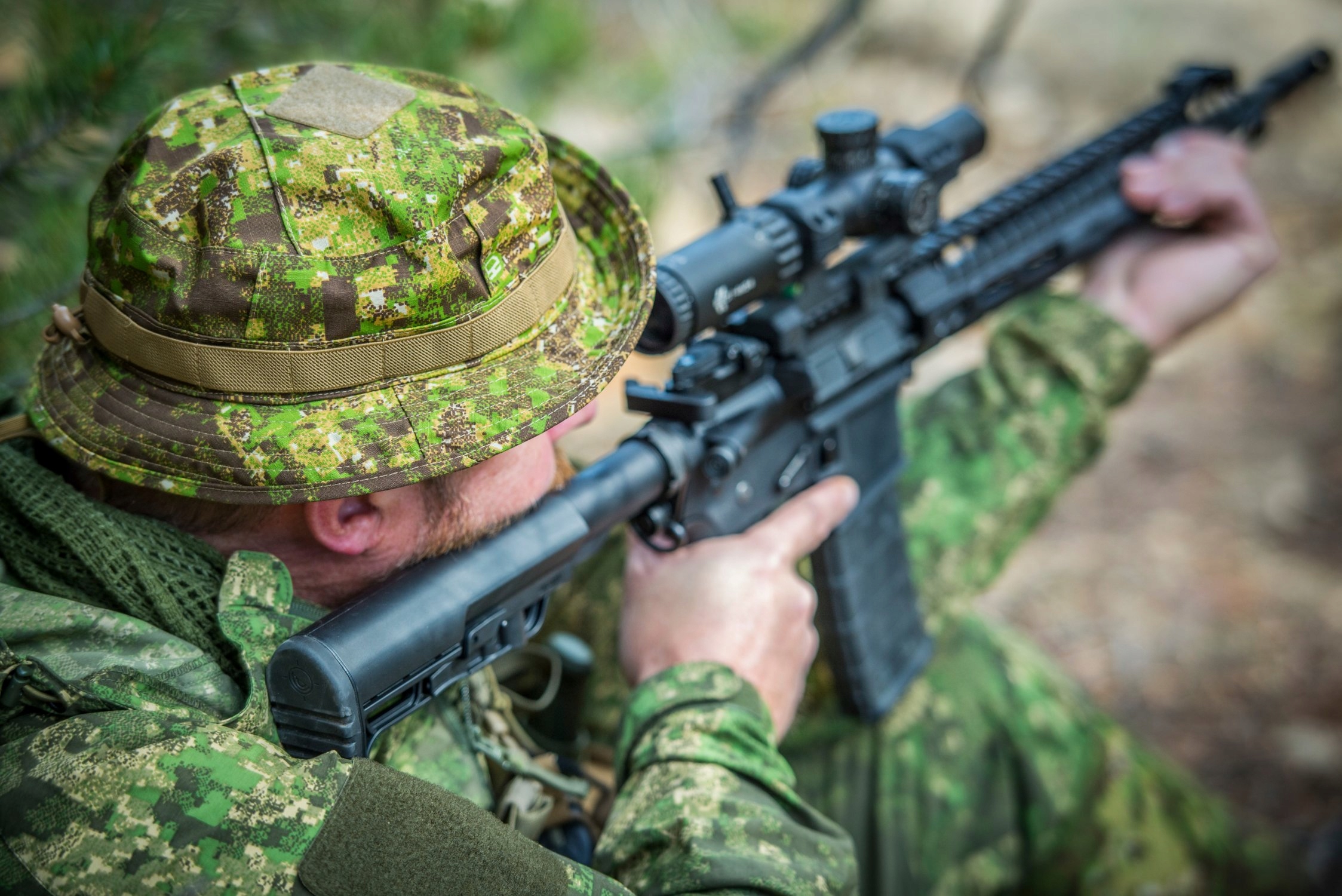 CPU Hat — це військова шапка з дуже характерним кроєм і вузькими полями, створена за зразком британських і австралійських капелюхів. Має регульований окружність, що значно полегшує пристосування до голови. Конструкція капелюха виключає металеві вентиляційні отвори на користь закритих сітчастих тунелів, розташованих не лише з боків, але й у верхній частині капелюха. Це рішення покращує циркуляцію повітря. Смужка від поту на лобі підвищує комфорт і запобігає накопиченню поту на лобі. Капелюх призначений для використання переважно в лісових умовах. Це важливий елемент камуфляжу голови.
