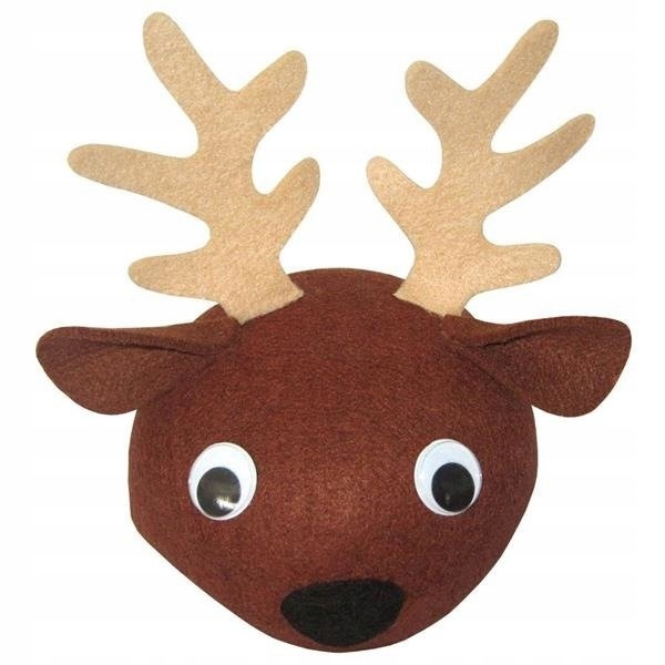 До капелюха прикріплені бежеві очі, ніс і ріжки.