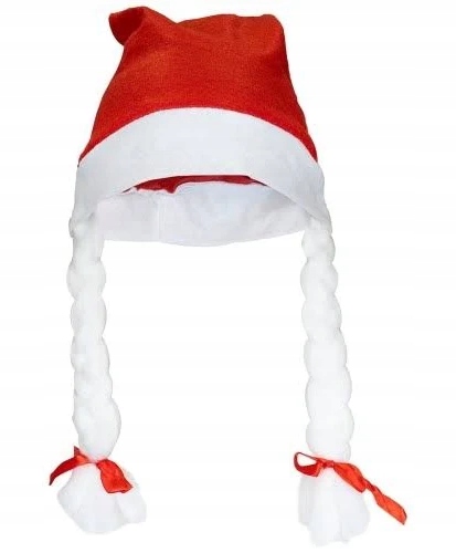 Червоний капелюх з білою окантовкою, помпоном і косами. Шапочка з фетру Даруйте подарунки своїм близьким і станьте чарівним Дідом Морозом!