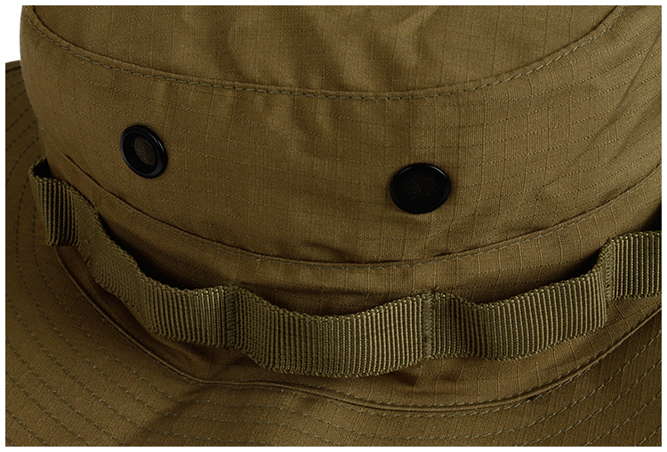 Навколо шапка має кріпильну стрічку, яка дозволяє прикріпити москітну сітку або маскувальні елементи.
