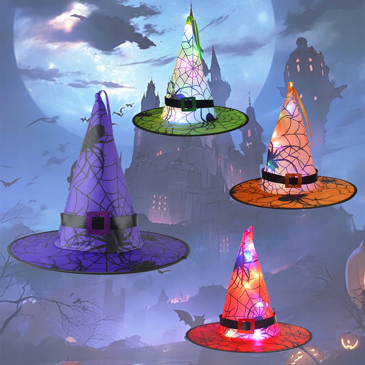 4 шт. сяючих прикрас на Хеллоуїн, капелюх відьми, 4 кольори, підвісні сяючі капелюхи відьми, сяючі різдвяні вогні для саду, двору, прикраси для вечірок
