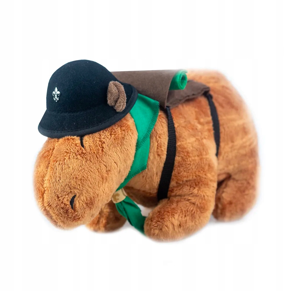 Плюшевий ведмедик Capybara Girl Scout — це чарівна плюшева іграшка, яка порадує кожного любителя пригод і природи, а також усіх скаутів і дівчат-скаутів... незалежно від організації, до якої вони належать! На цій симпатичній капібарі маленький шарфик на мініатюрній блискавці і флердолі, рюкзак зі спальником і... шапочка з металевим флердолем. Її усміхнене обличчя та веселі очі додають шарму, а її ставлення випромінює впевненість і готовність діяти. Увага! Пані та панове... Капібара розвідника!