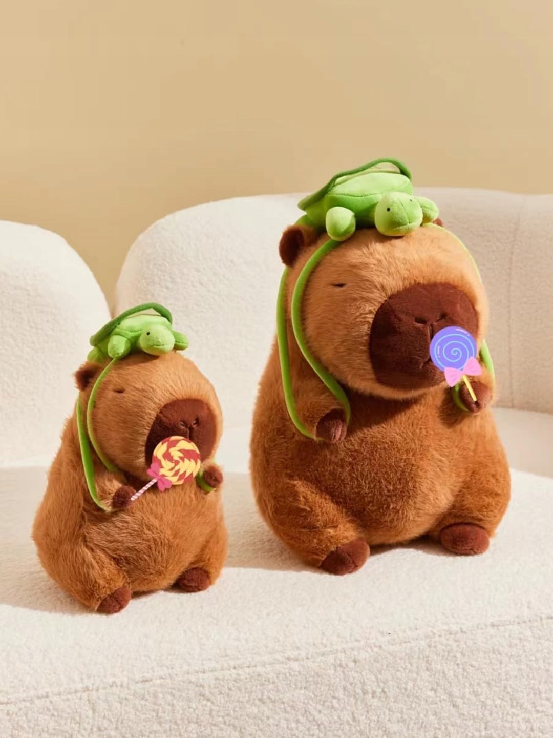 Капібара — не просто звичайна іграшка. Він має рюкзак, який є милою черепашкою. Його знімають, тож ви можете одягати його й на інших м’яких тварин!