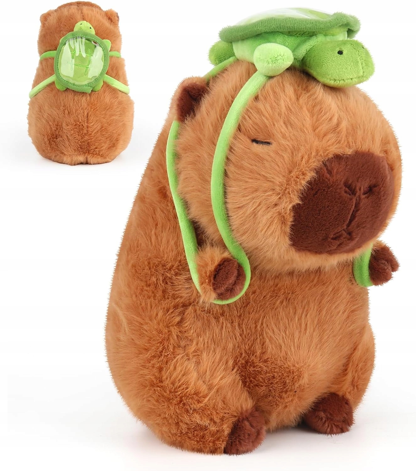 КАПІБАРА ТАЛІСМІН, ПЛЮШЕВА ІГРАШКА КАПІБАРА З РЮКЗАКОМ ЧЕРЕПАХА, 30 СМ, ВУХА 5 СМ