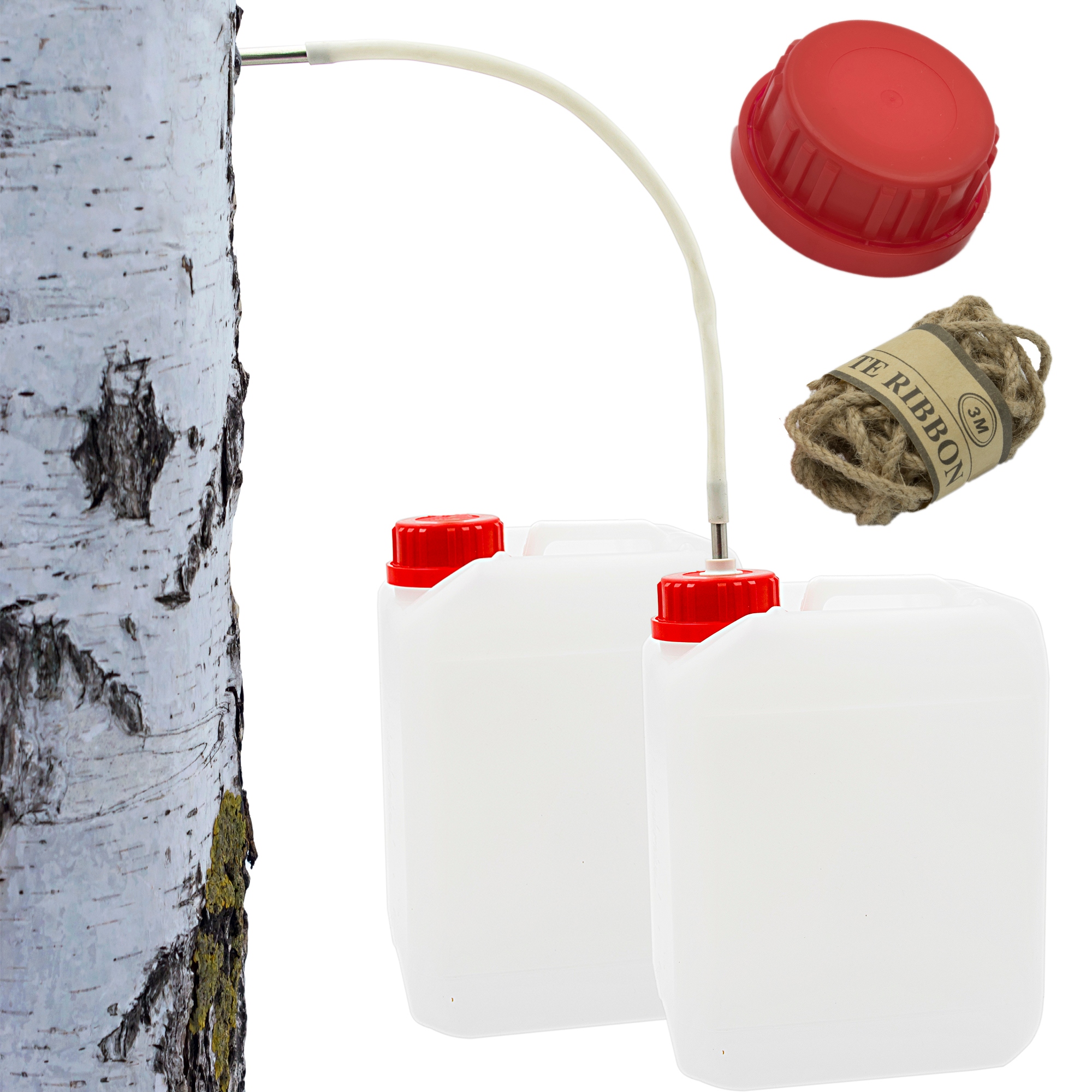 Капілярна трубка, встановлена для отримання березового соку 2x банк 5L + 2x трубка