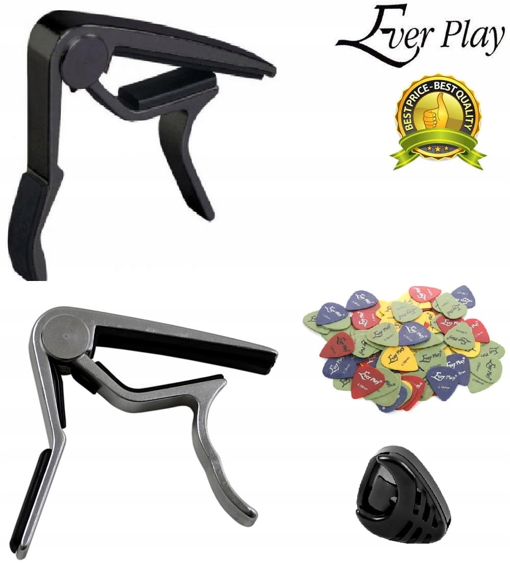 Легкий, надійний EVER PLAY capoчорний або хромованийз міцною та міцною пружиною, яка забезпечує належний тиск усіх струн на гриф.