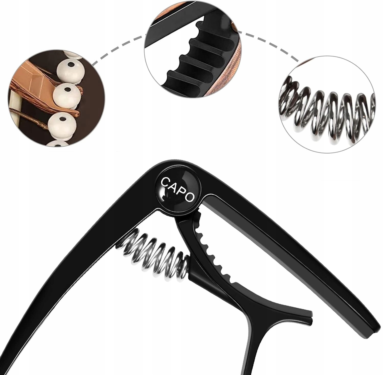 ✅ компактні та портативні: малі розміри та комфортний дизайн роблять капсин легким для переміщення та використання у будь -якій ситуації. B> ✅ простота використання: Спеціальний пружинний затискач дозволяє швидко і не пережити зміни положення на шиї. Захист від пальців, гріффіна I, запобігання їх пошкодженню. B> ✅ Естетичний вигляд: Чорний Капсон ідеально вписується в різні стилі гітари.