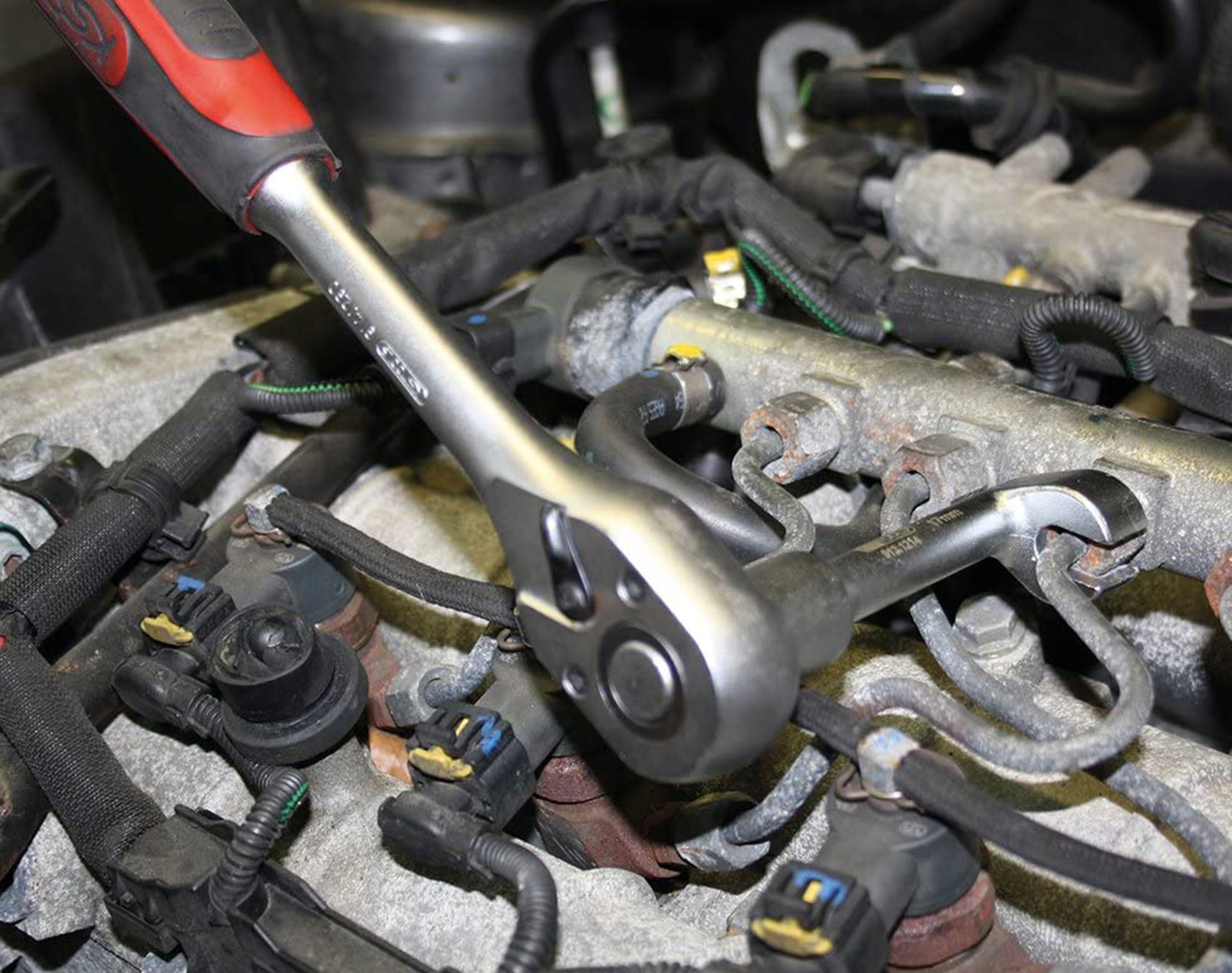 - Спеціальна конструкція відкритих клавіш дозволяє працювати з кабелями інжектора в твердих місцях -прочитаних місцях
