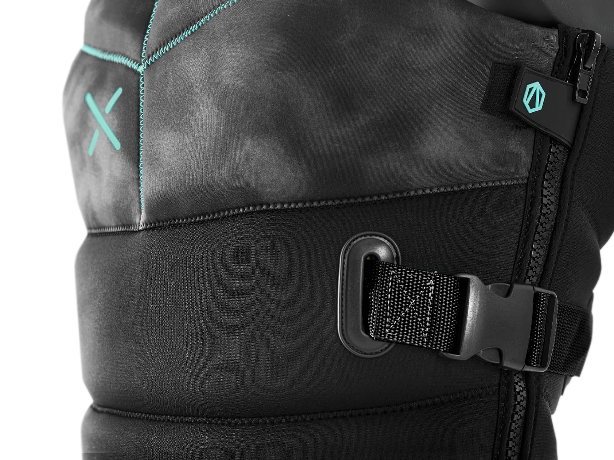 Зроблено з м'якого та гнучкого неопрену N-Flex 2.0 та спеціально профільованої піни NBR, ідеально адаптується до фігури, забезпечуючи при цьому повну свободу руху. Бічне кріплення замка YKK та регульованого ременя з пряжкою полегшує надягання та ідеально підходить, а D-кільце, щоб прикріпити кабель кола, збільшує безпеку.