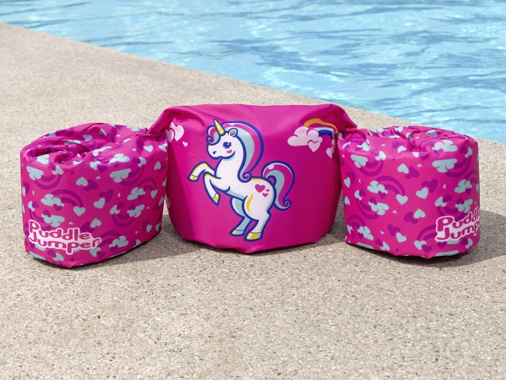 готовий до літа, повного посмішок та розваг біля води? Зустріньте жилет з плавання за допомогою кошики для кошики з калюжів з кошиком для руків з єдинорогом!