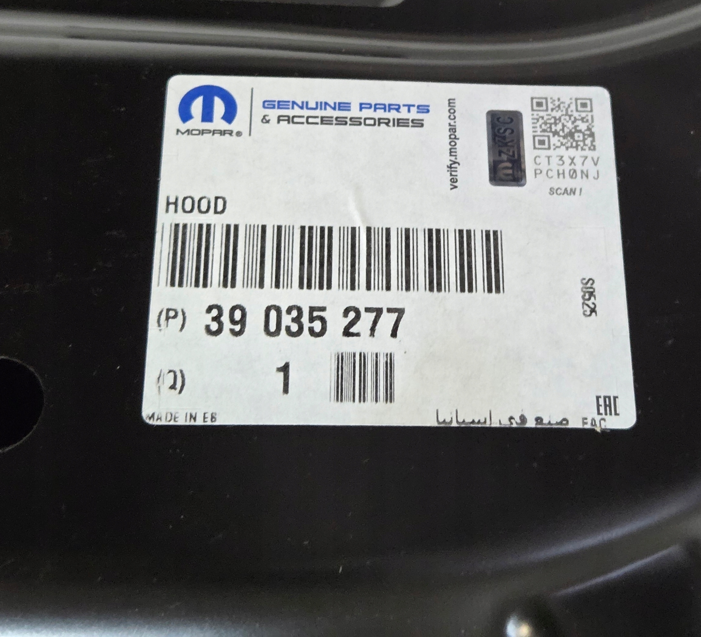 КАПОТ, КРИШКА ДВИГУНА OPEL CORSA E НОВИЙ ОРИГІНАЛ 39035277