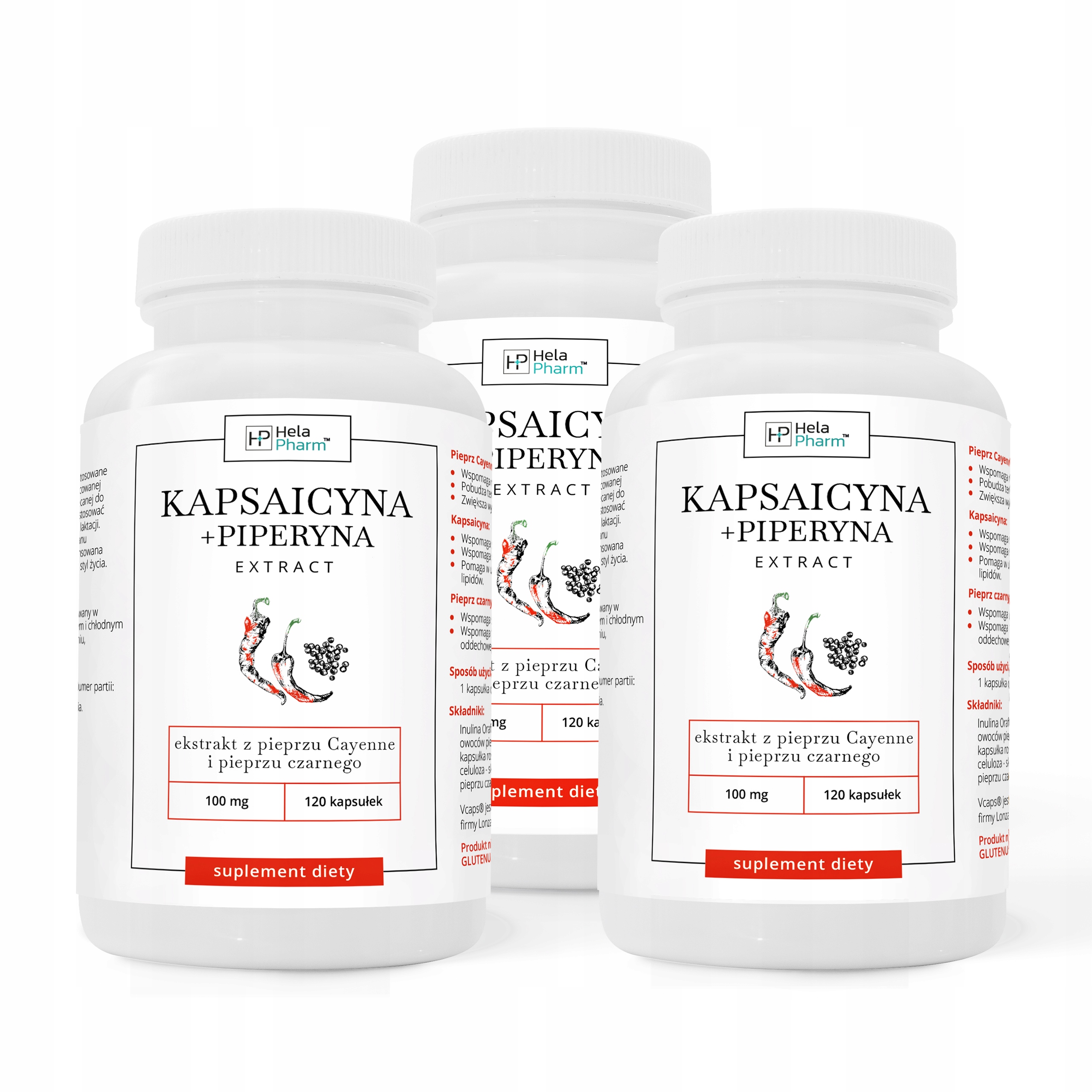 КАПСАЇЦИН + ЕКСТРАКТ ПІПЕРИНУ + пребіотик 2 х 120 капсул VEGE від Hela Pharm® - допоможе зменшити зайву вагу:
